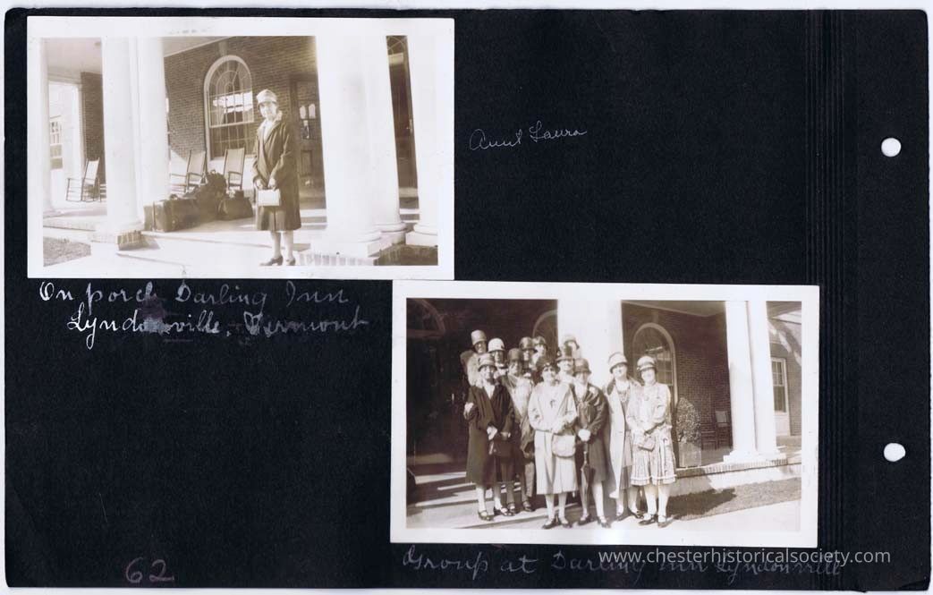 page 62 Aunt Laura on porch Darling Inn, Lyndonville, Vermont; Group at Darling Inn, Lyndonville