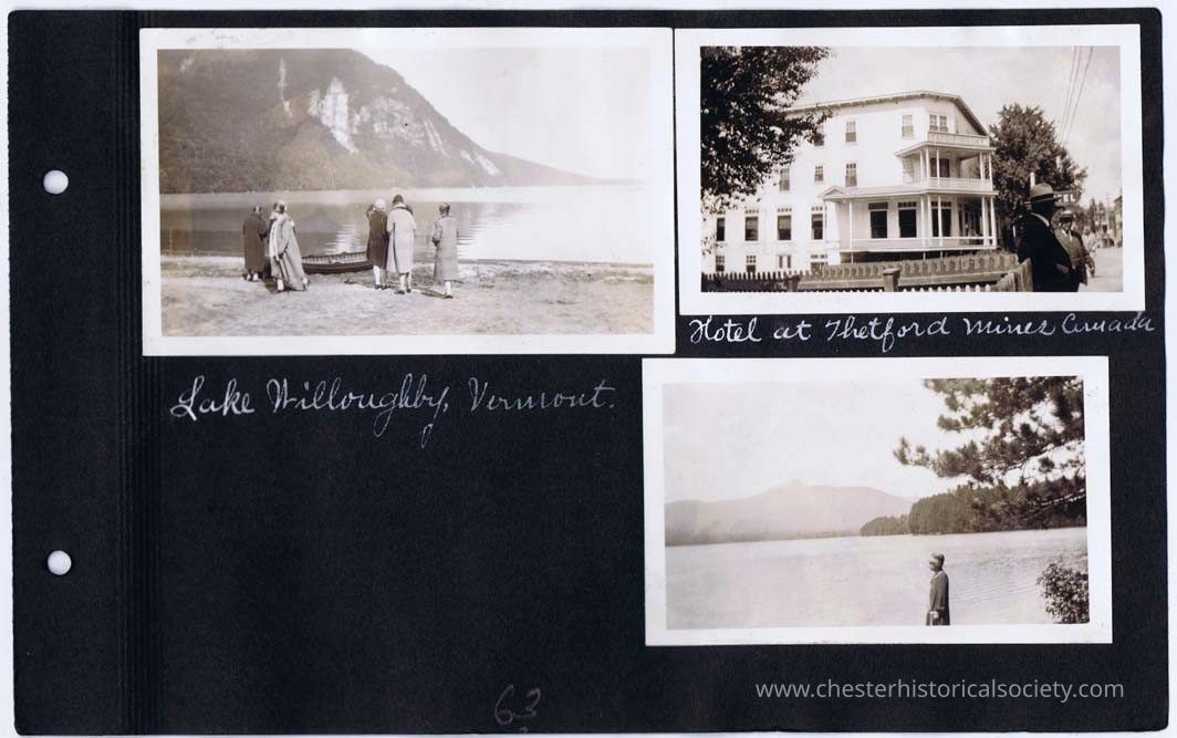 page 63 Lake Willoughby, Vermont; Hotel at Theford Mines Canada; (Mildred at lakeside)
