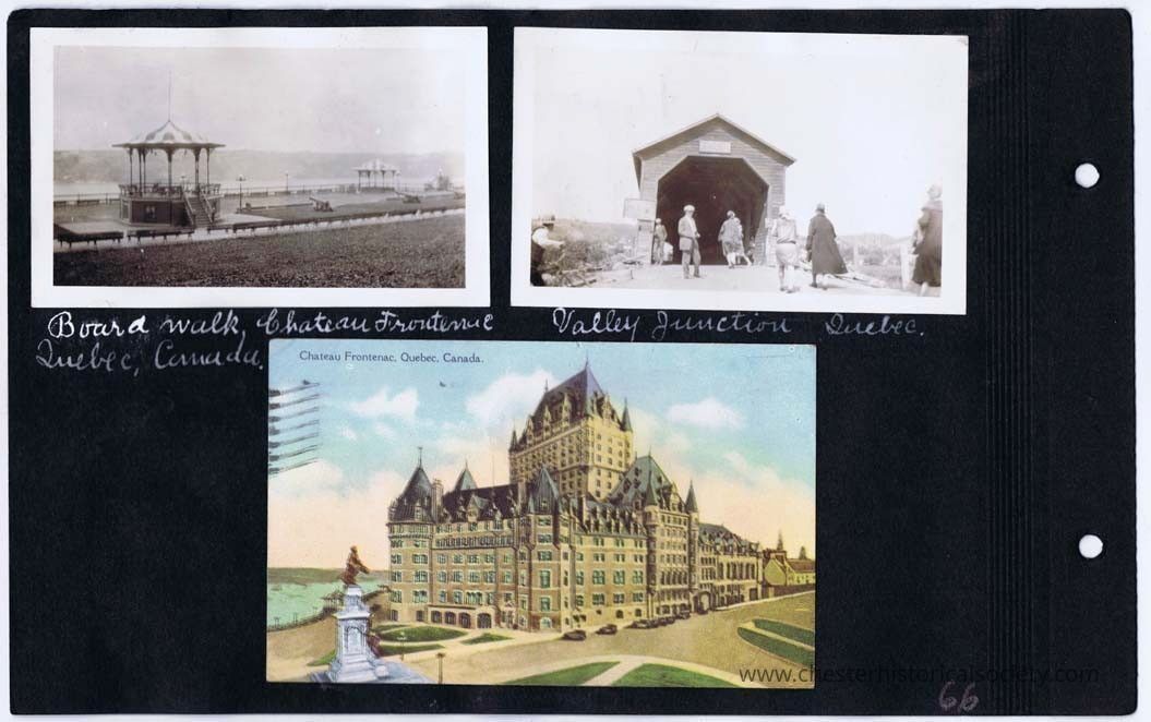 page 66 Board walk, Chateau Frontenac Quebec, Canada; Valley Junction, Quebec; Chateau Frontenac Quebec, Canada (postcard)