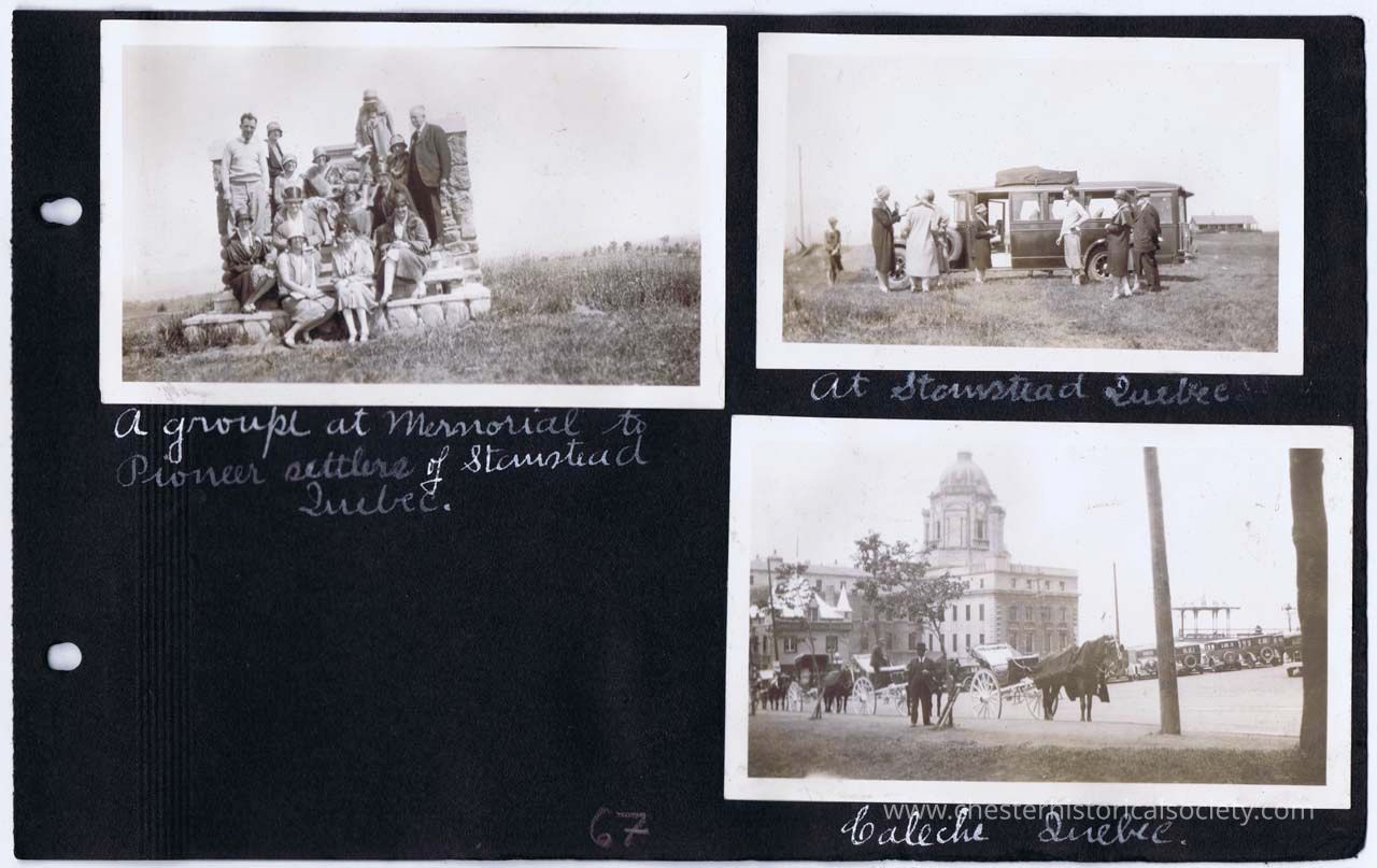 page 67 A group at Memorial to Pioneer settlers of Stormstead, Quebec; At Stormstead, Quebec; Caleche, Quebec