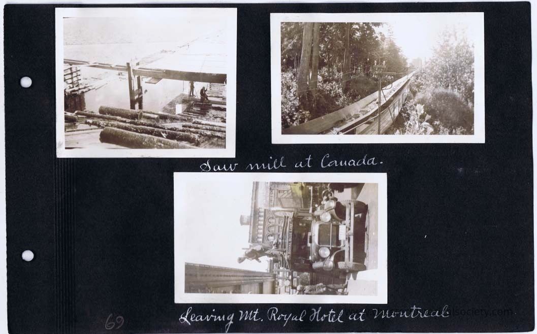 page 69 Saw Mill at Canada (two photos); Leaving Mt. Royal Hotel at Montreal.