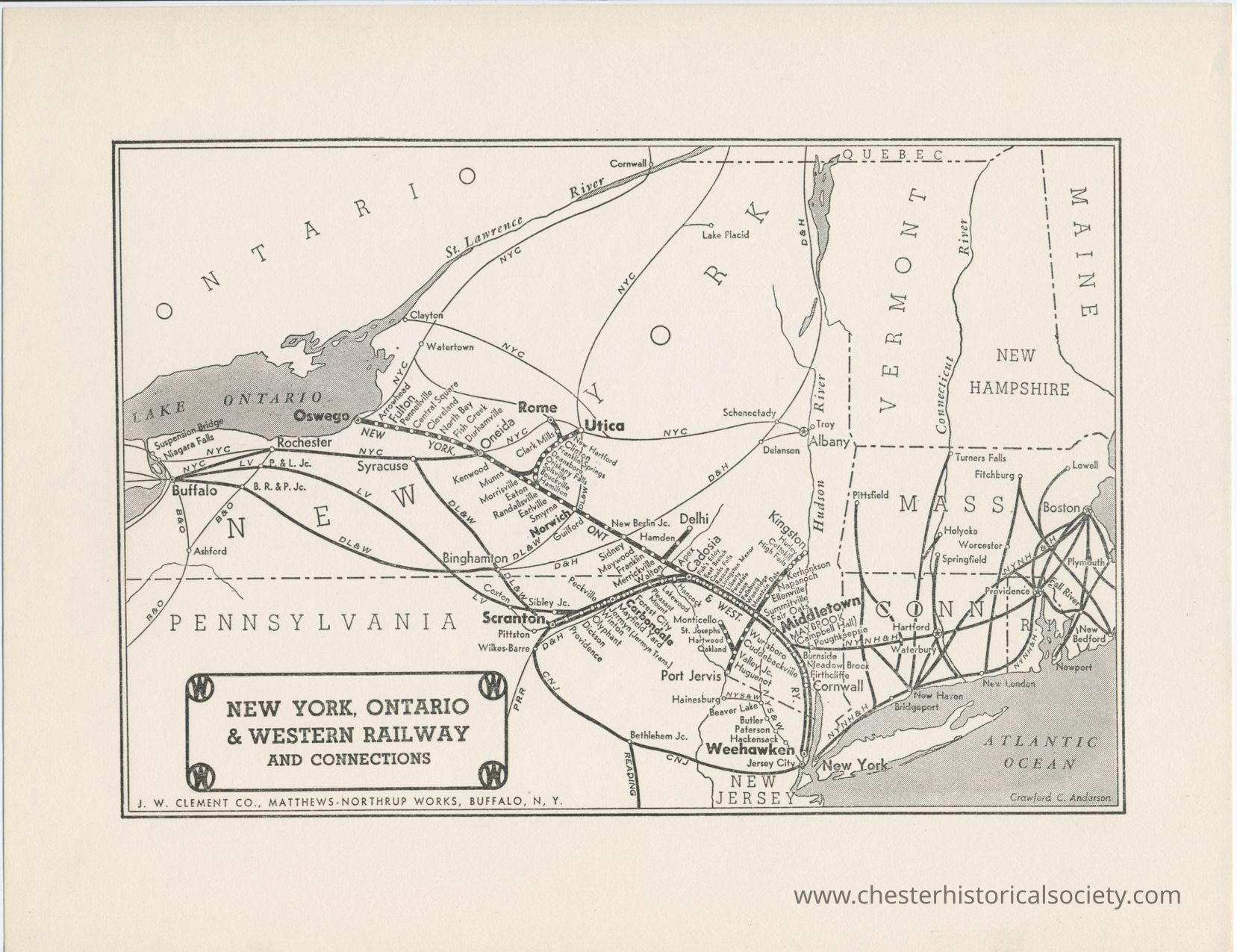 The map illustrates the New York, Ontario & Western Railway and its connections across northeastern United States regions.Acquisition