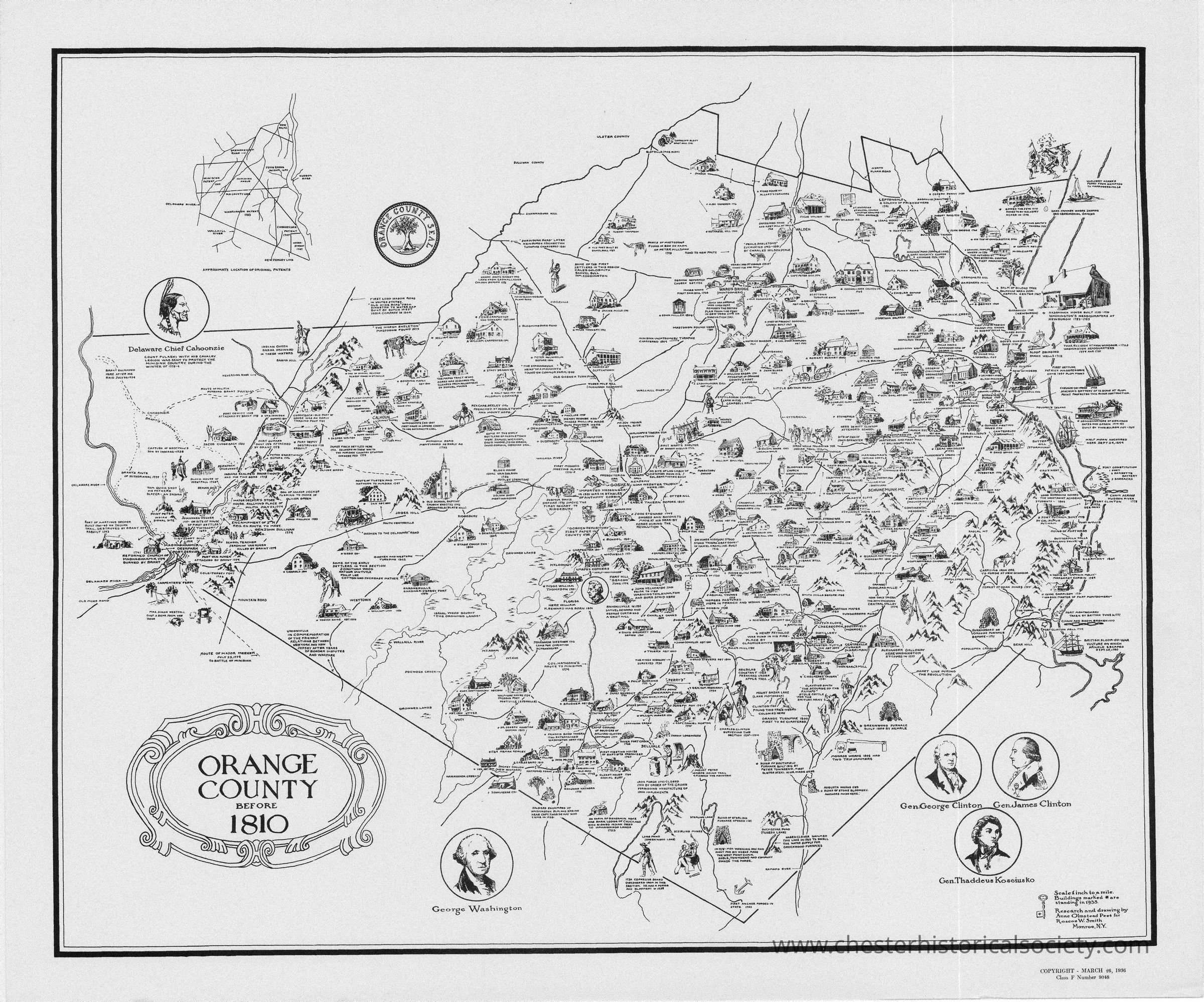 Orange County before 1810 by Anne Olmstead Peet commissioned by Roscoe Smith, Monroe, NY. Roughly 24 1/2 by 21 inchesCollection
