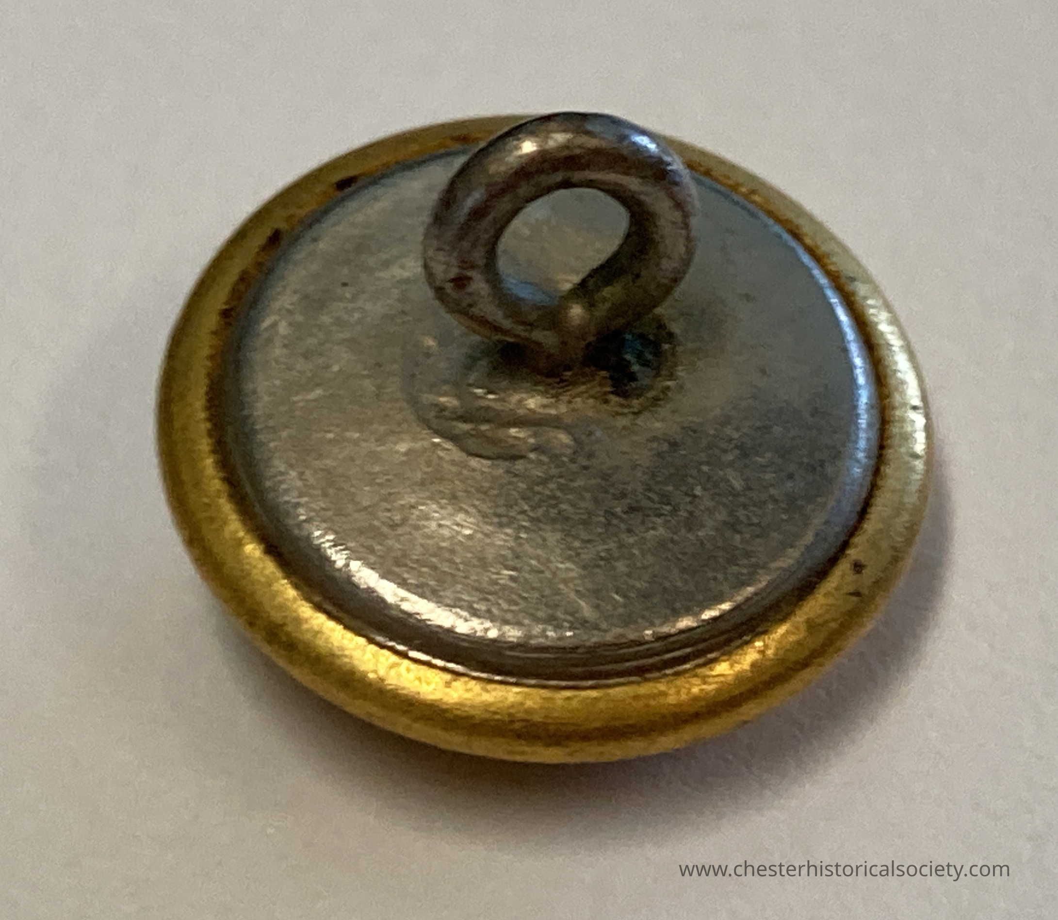 A gold-colored, plain loopback button featuring an ornate design and a laurel wreath encircling the letter "P".Acquisition