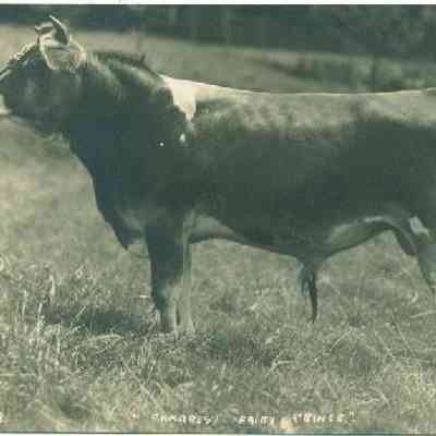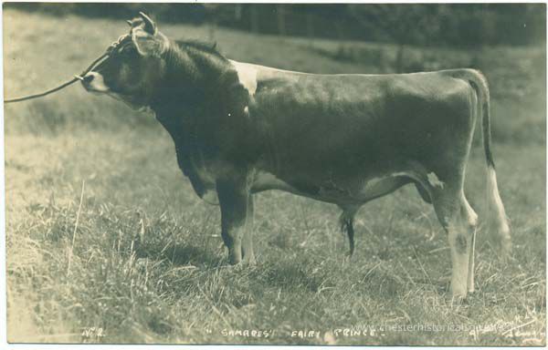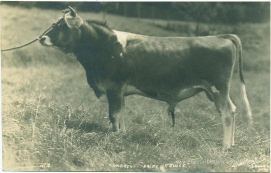 Photo post card of Samare’s Fairy Prince, an Edmond Butler Brook Farm bull Butler was famous for importing cattle stock from the Isle of Jersey.