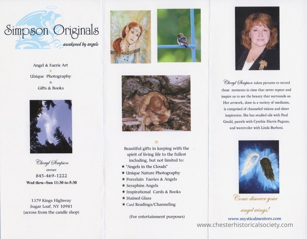 The brochure showcases “Simpson Originals,” featuring angel and faerie art, unique photography, and various other creations by Cheryl Simpson .Category