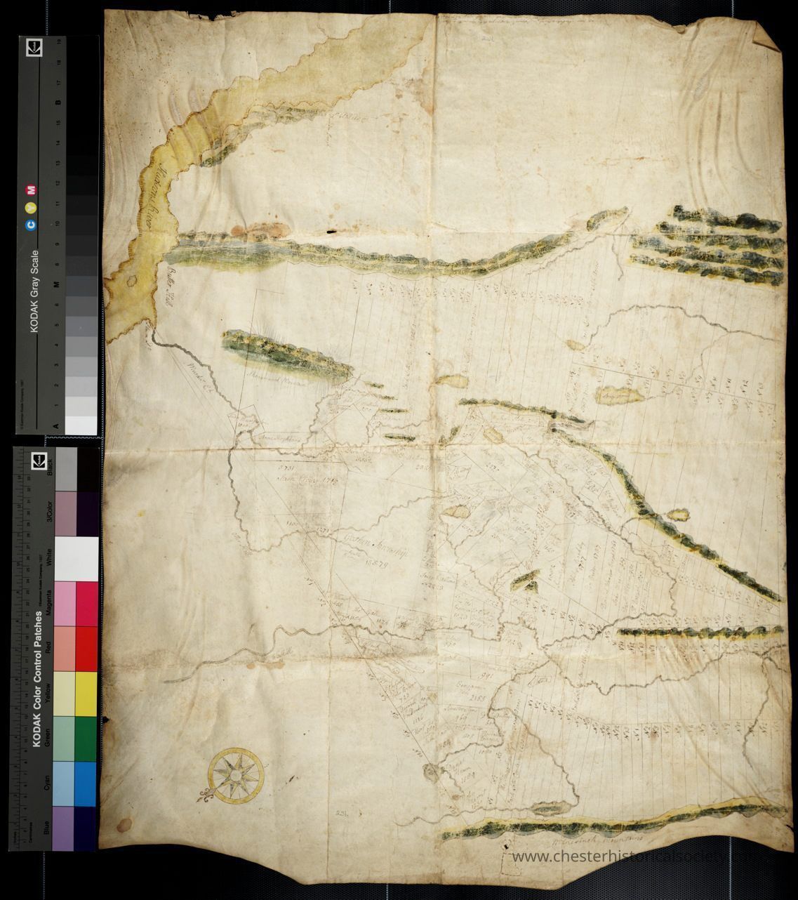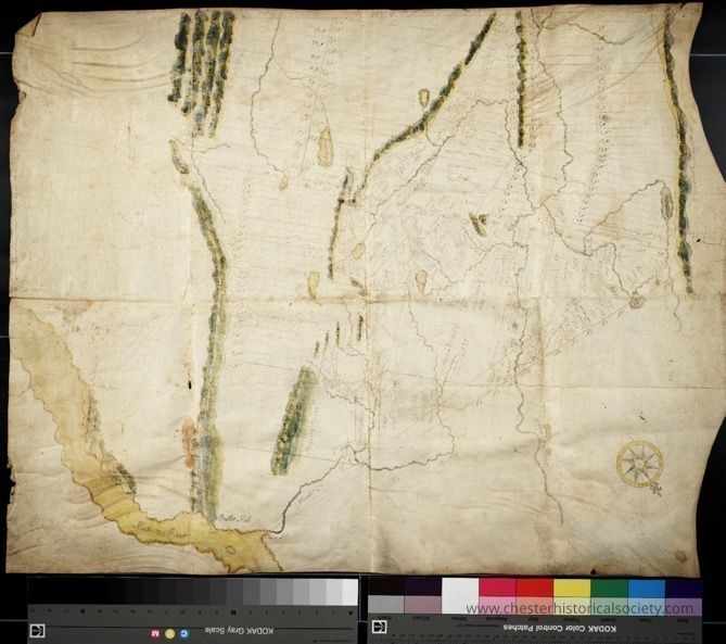 An undated survey map of Goshen Township, N.Y., and surrounding area that may have been done by Robert Erskine, ironmaster at Ringwood Mines and surveyor-general under General George Washington.