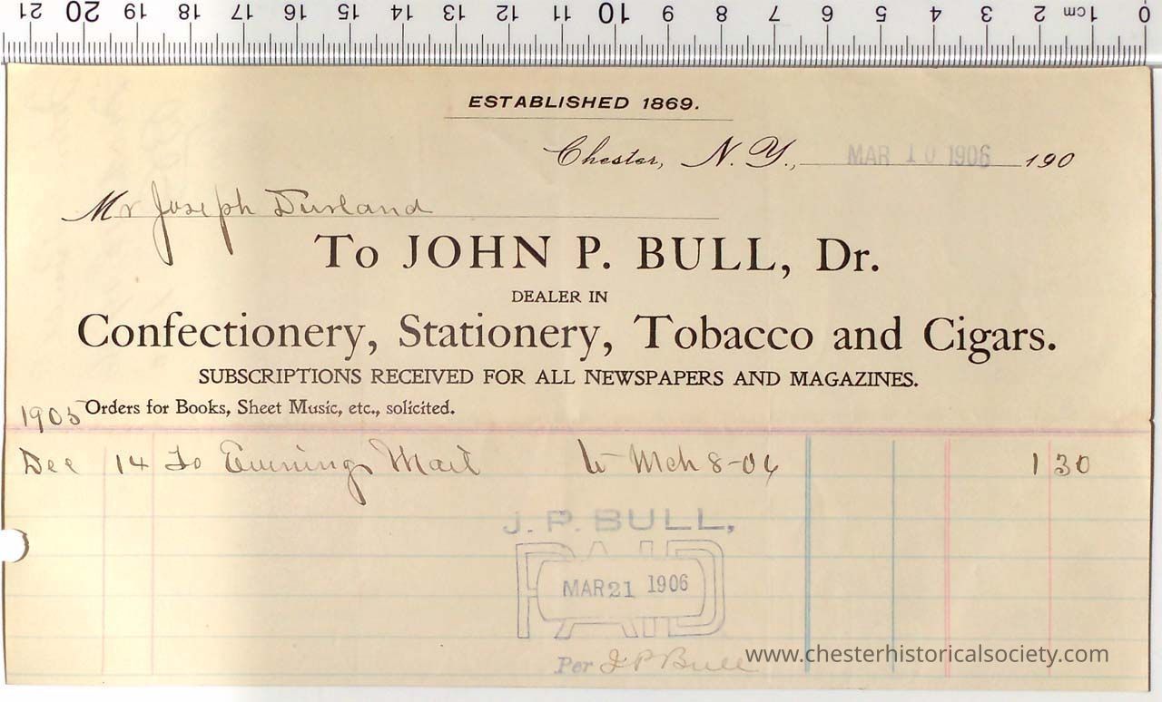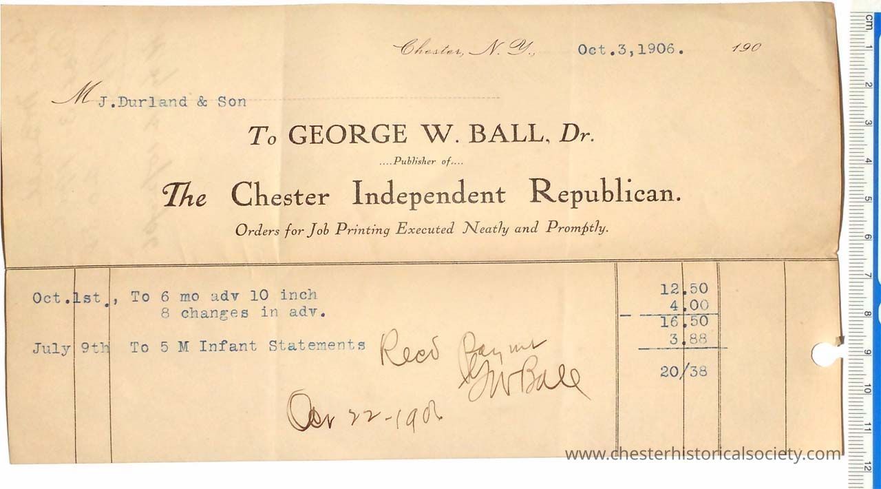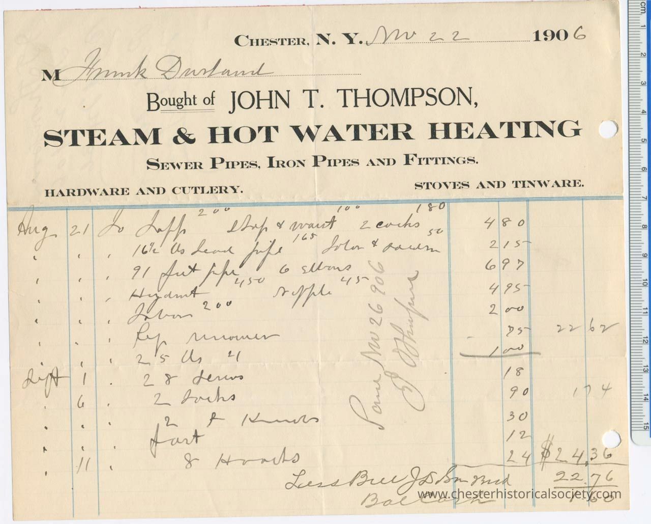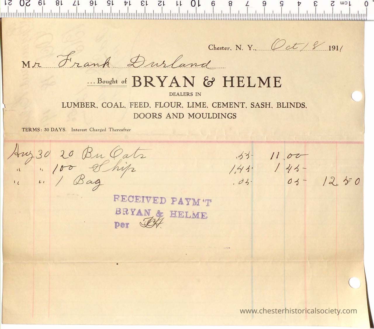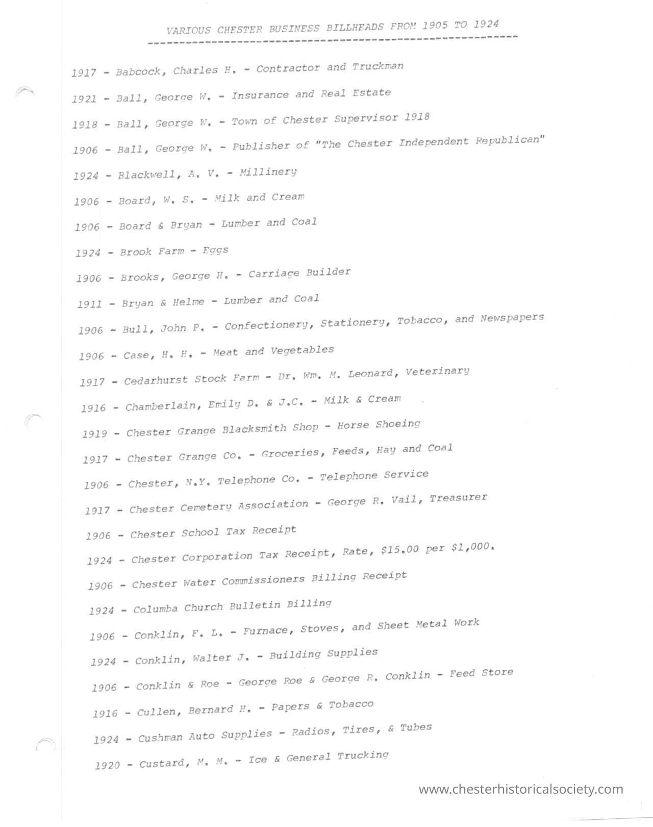 Various Chester Business Billheads from 1905-1924 compiled by William "Bill" S. Durland.