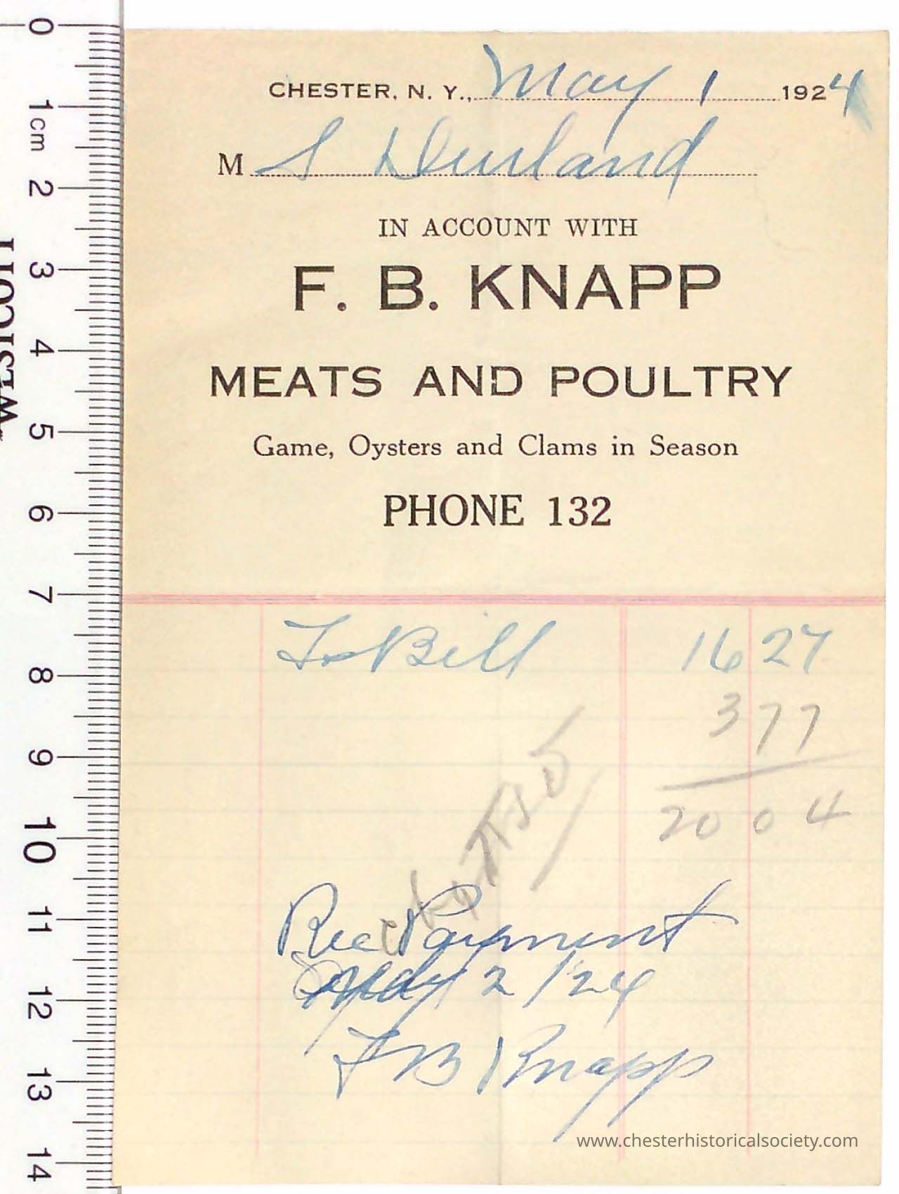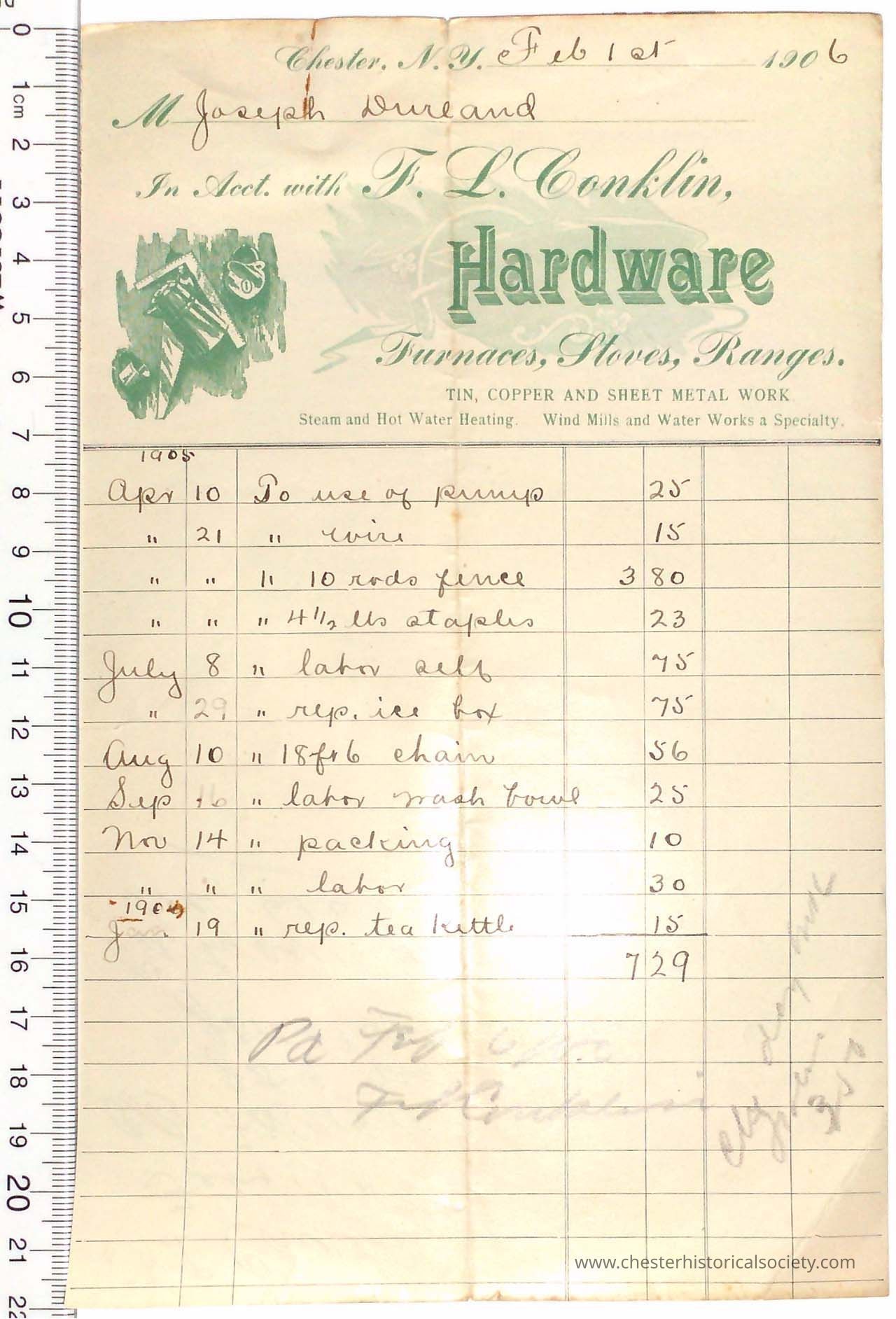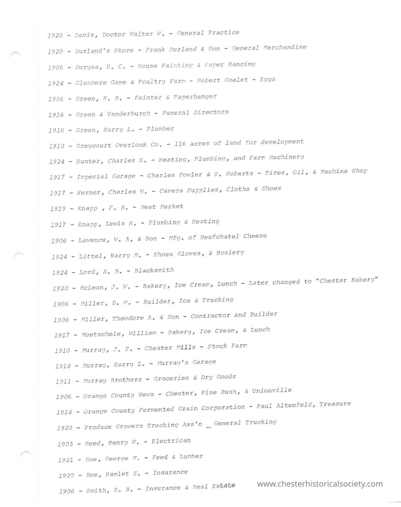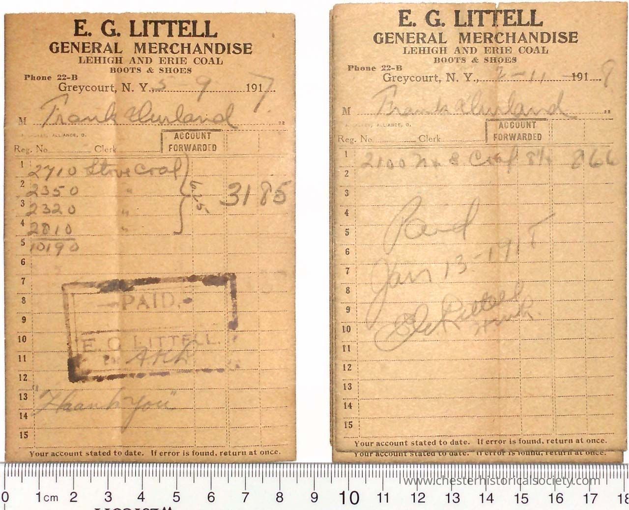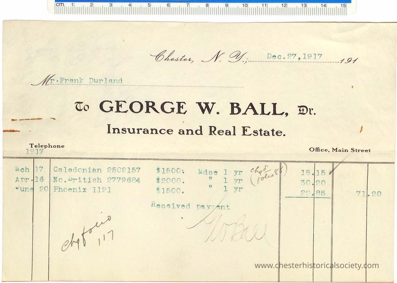 Various Chester Business Billheads from 1905-1924 compiled by William "Bill" S. Durland.