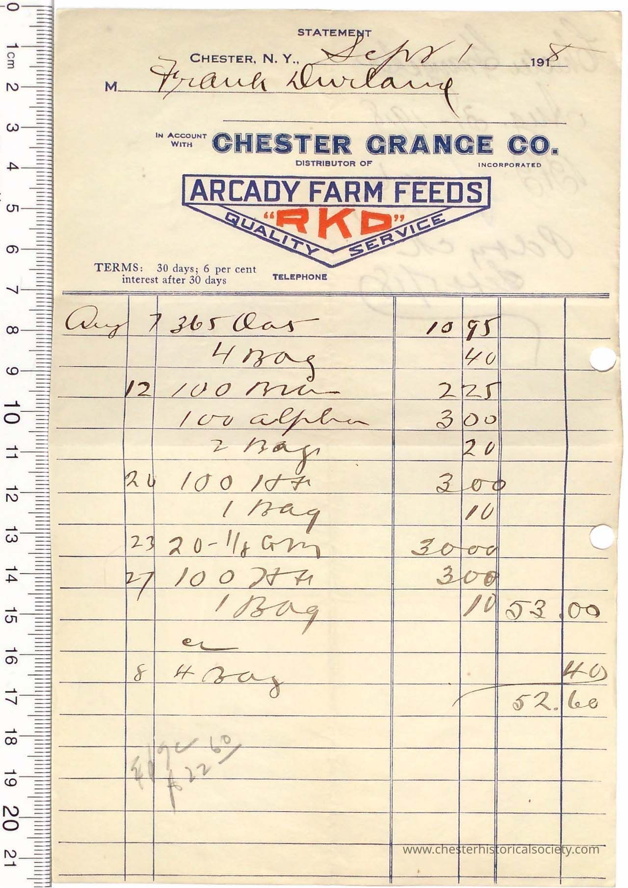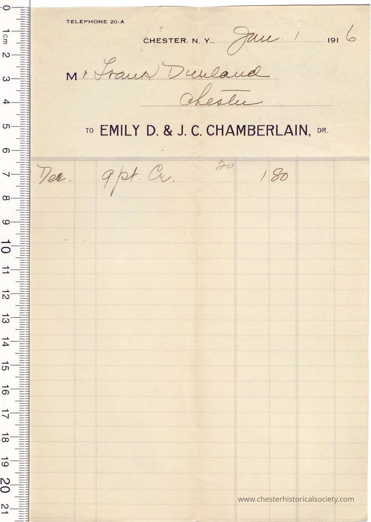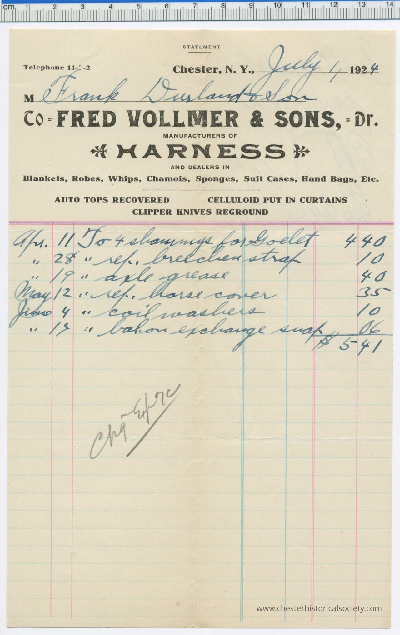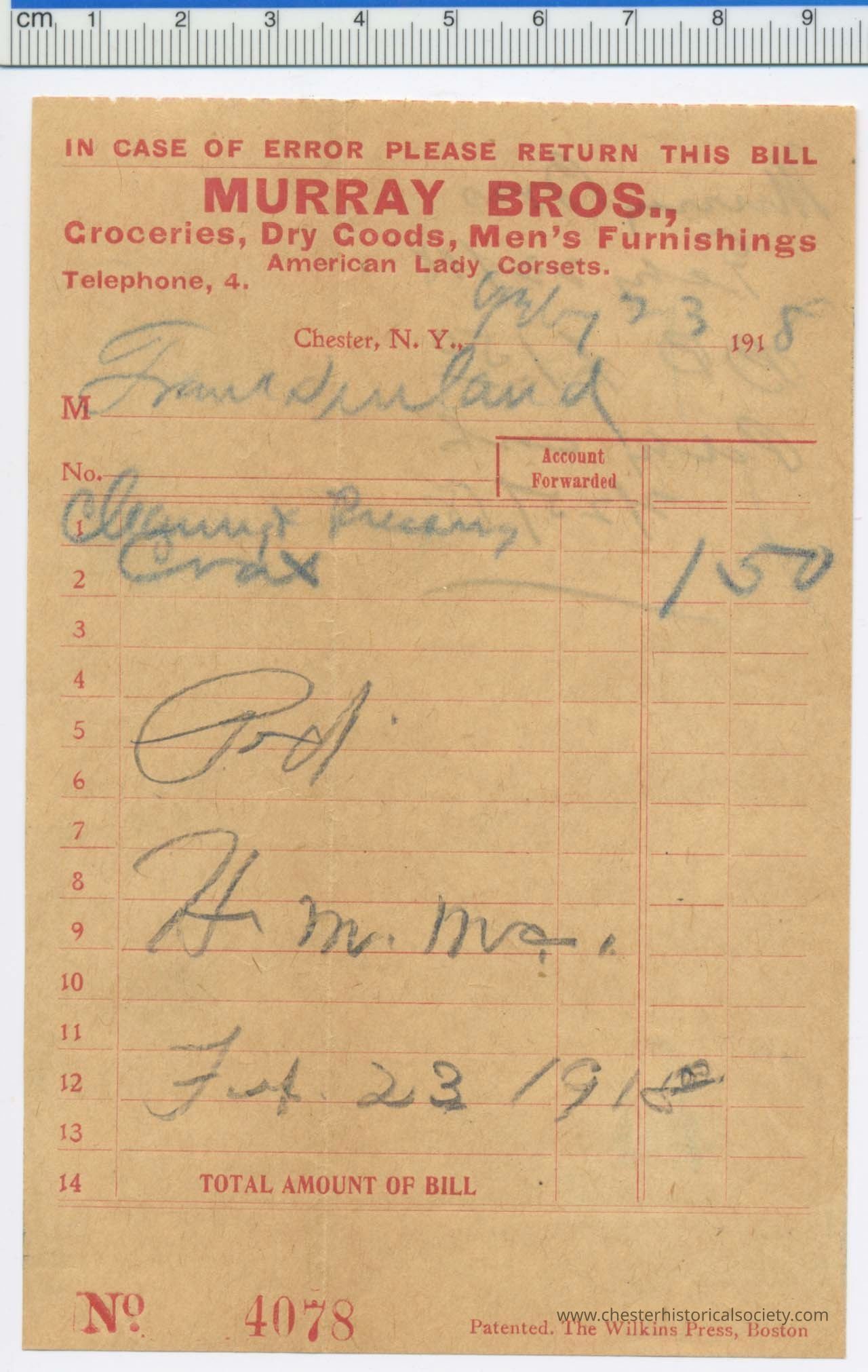 Various Chester Business Billheads from 1905-1924 compiled by William "Bill" S. Durland.