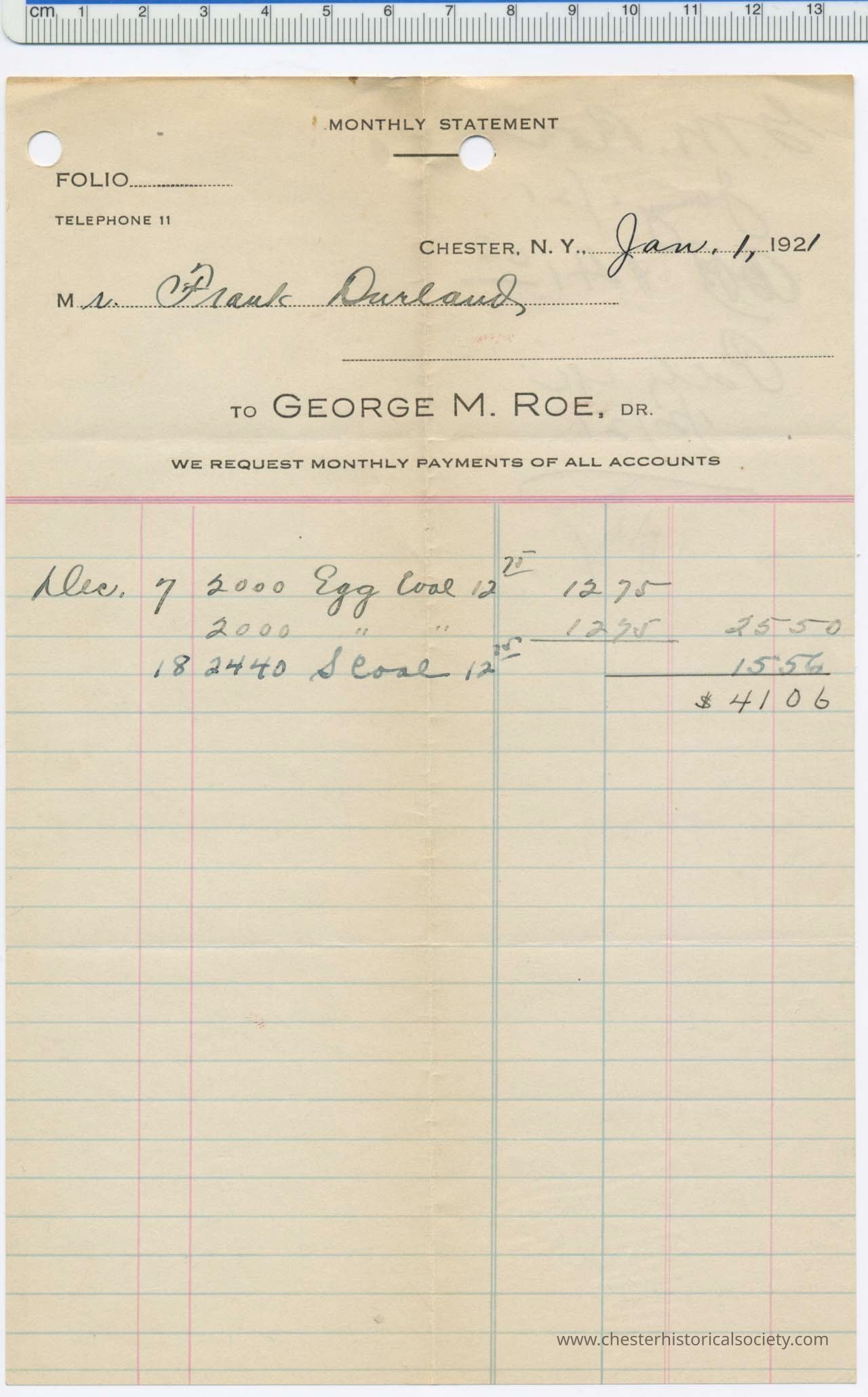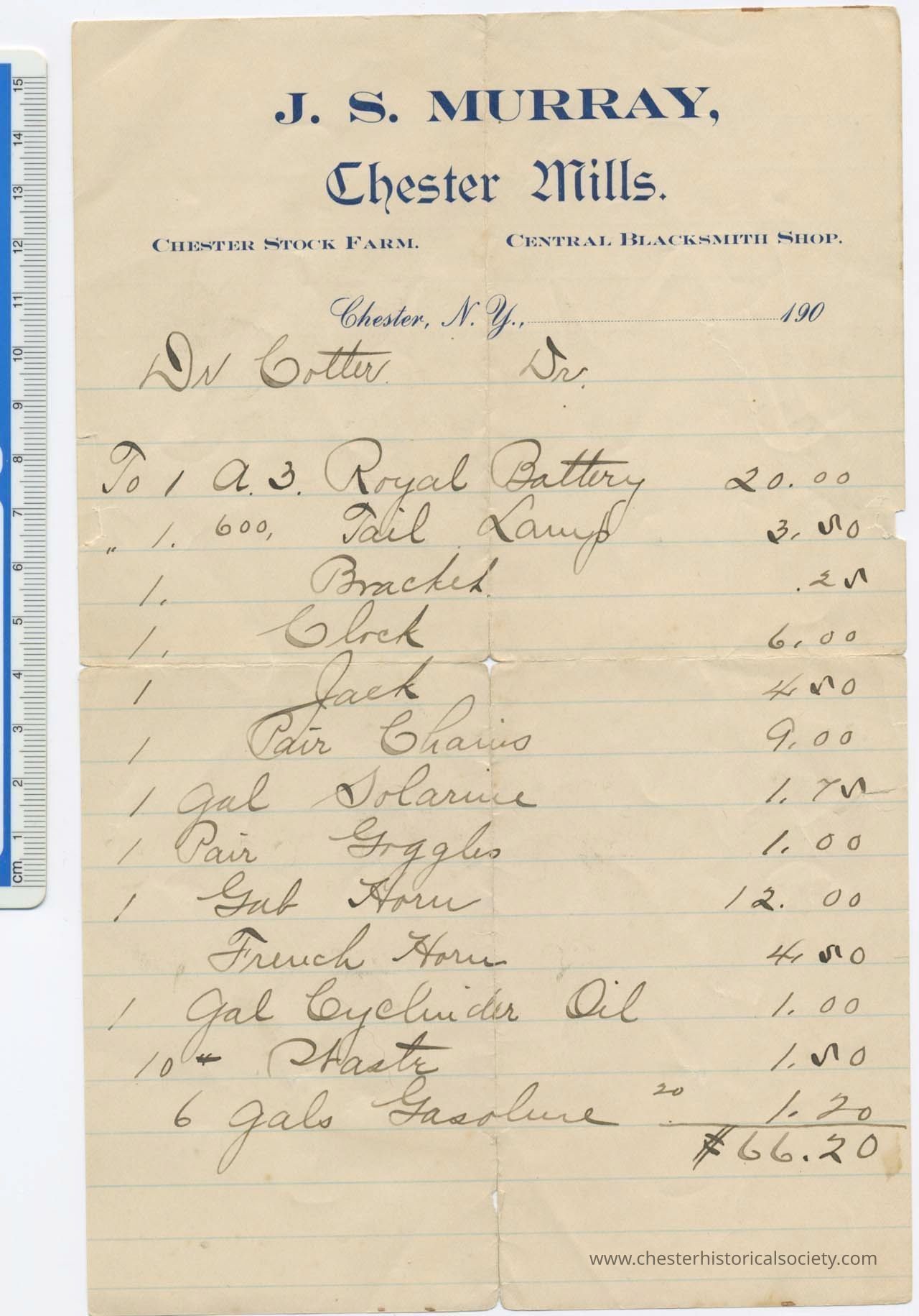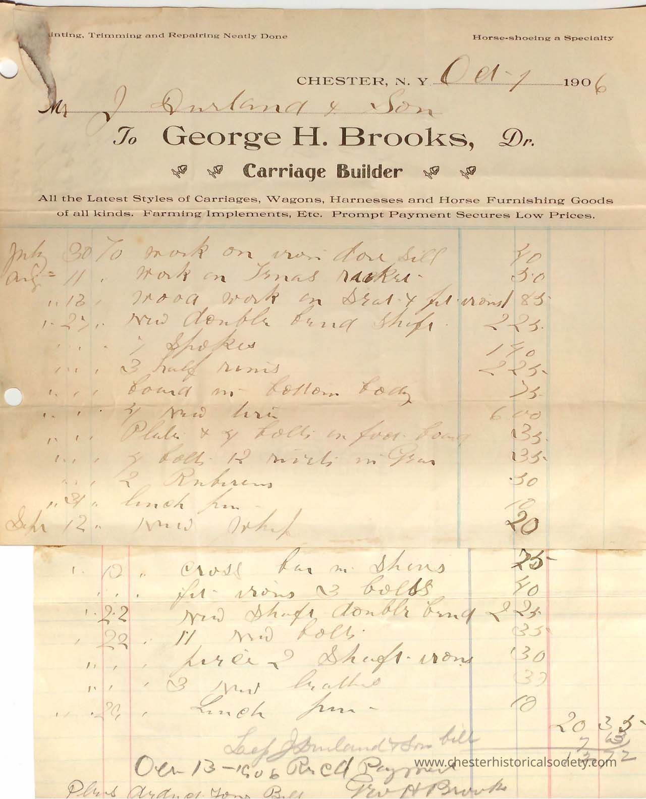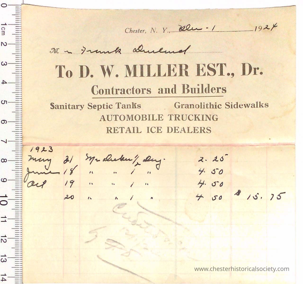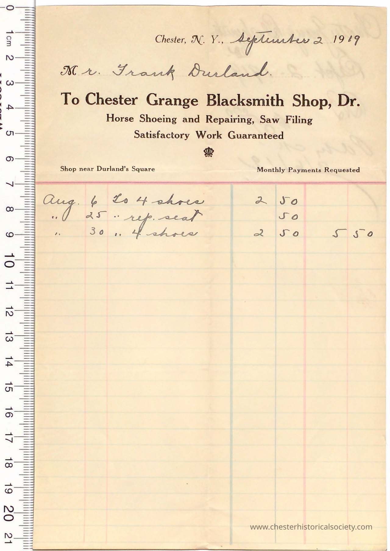 Various Chester Business Billheads from 1905-1924 compiled by William "Bill" S. Durland.