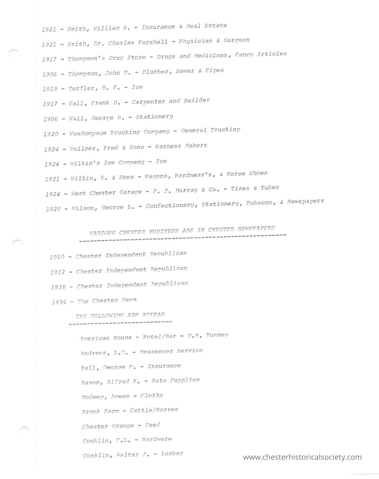 Various Chester Business Ads In Chester Newspapers