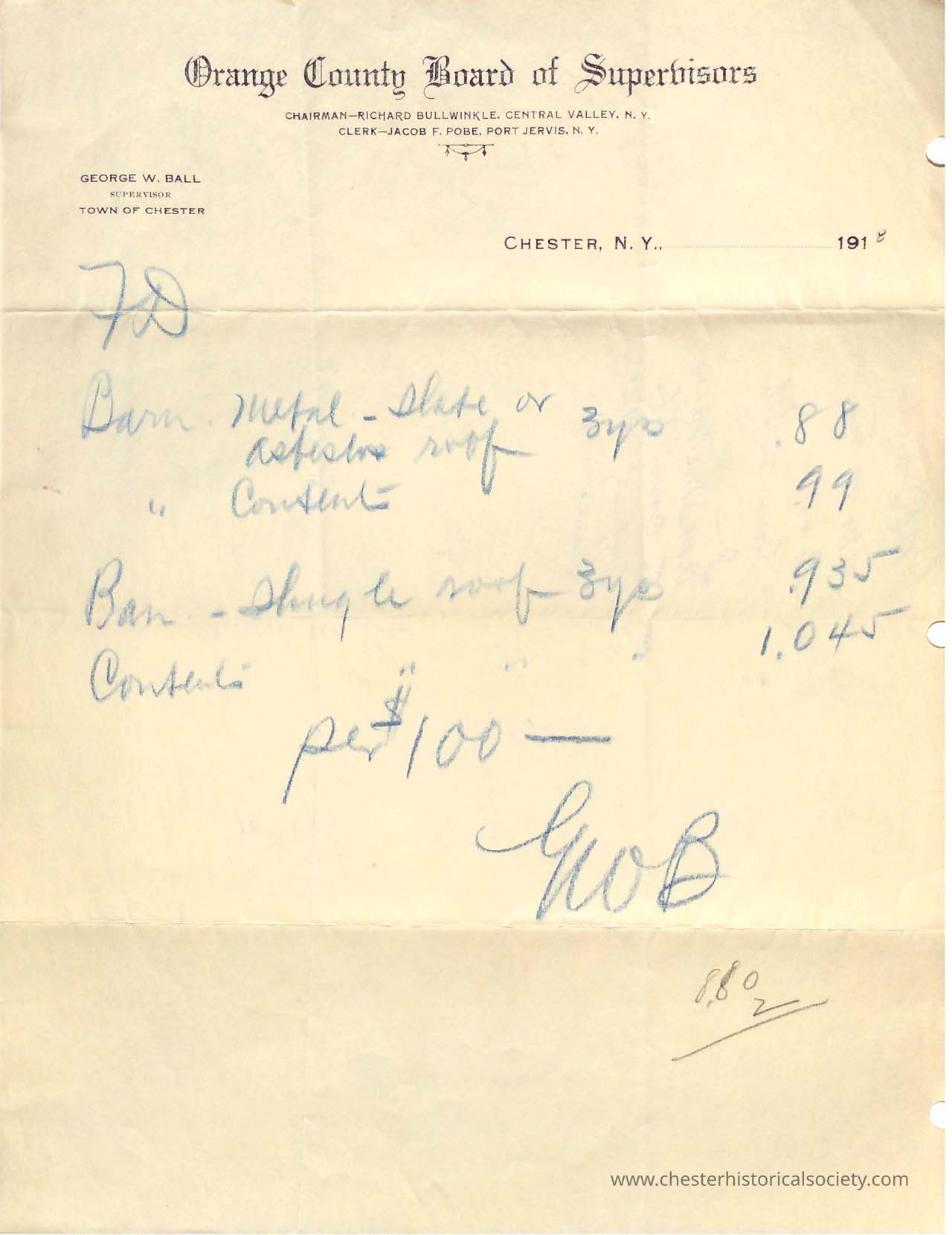 1918 - Ball, George W. - Town of Chester Supervisor 1918