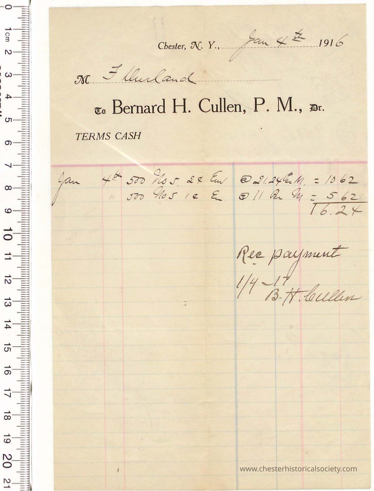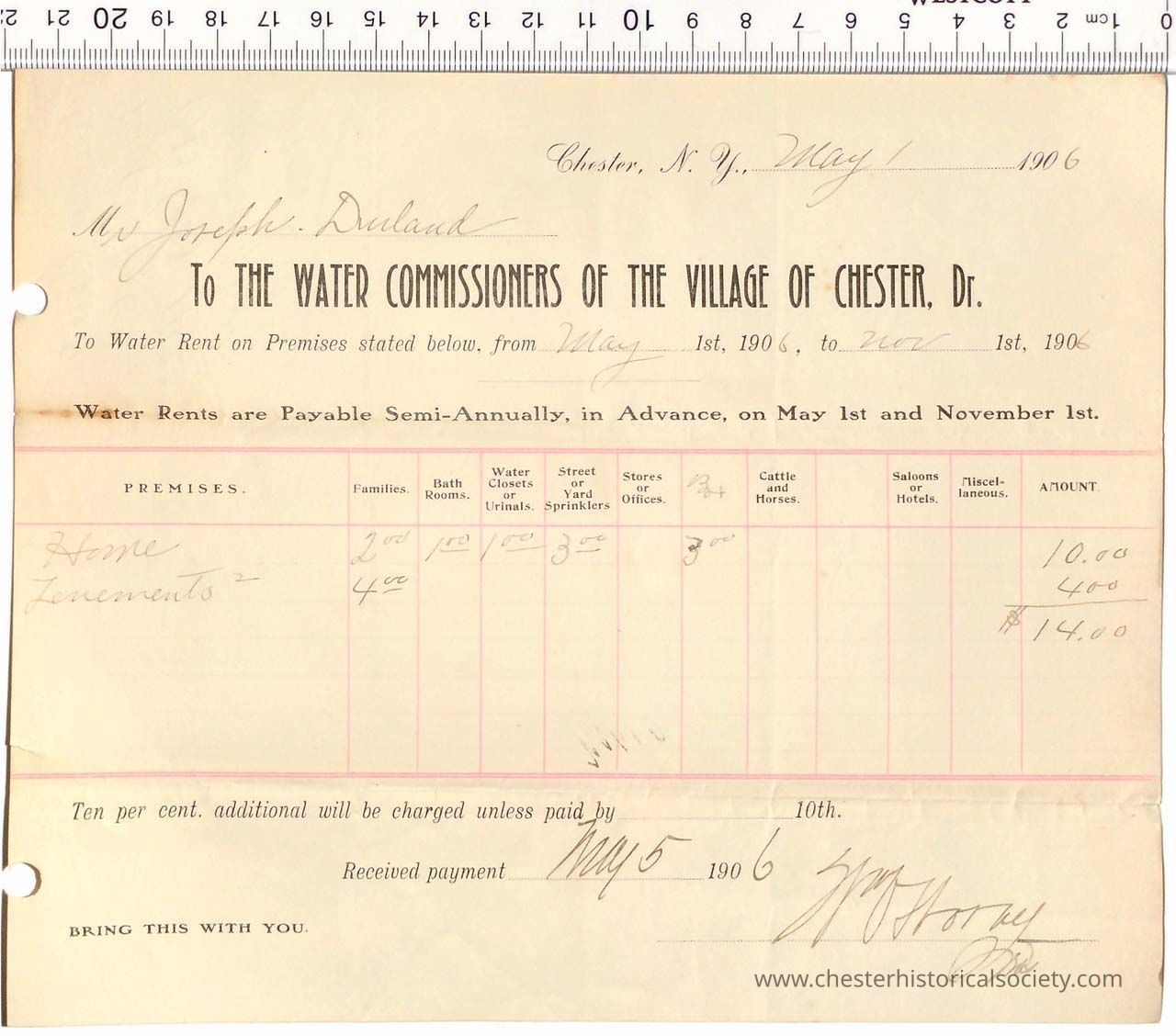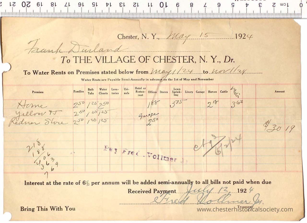 1906 - Chester Water Commissioners Billing Receipt
