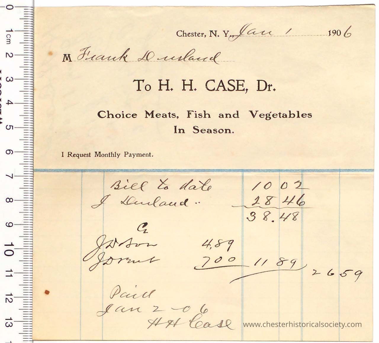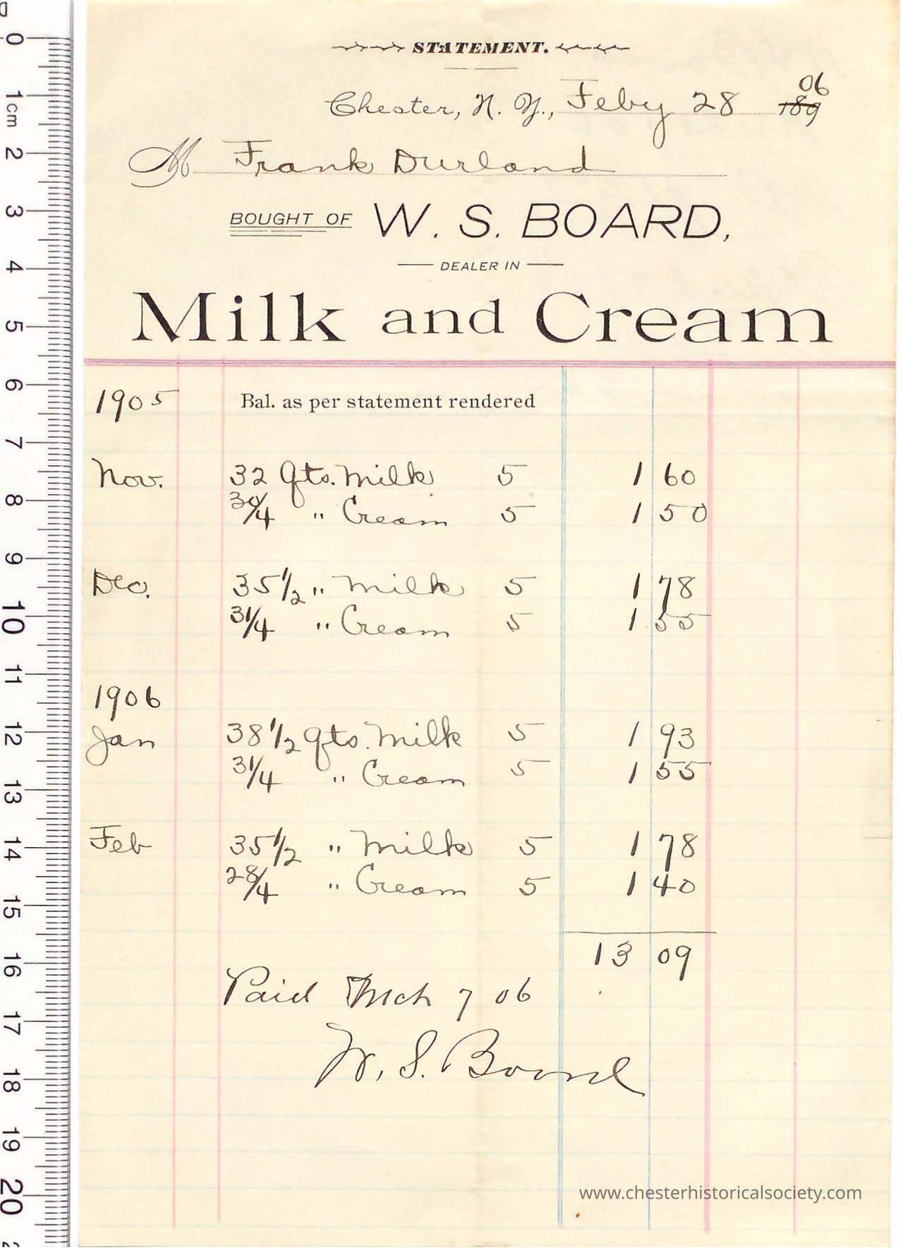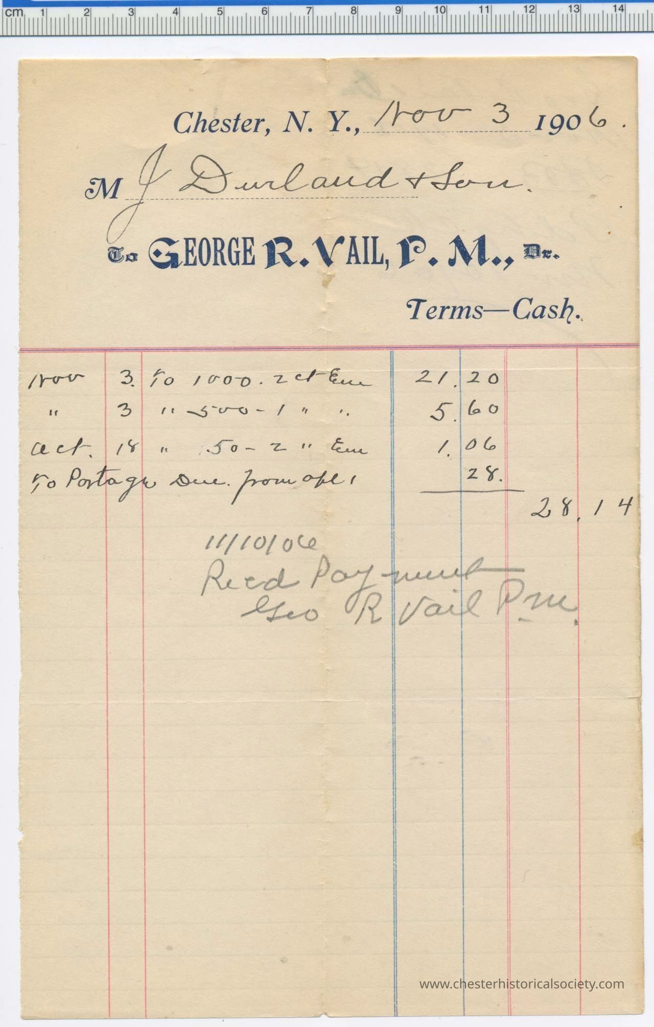 1906 - Chester Water Commissioners Billing Receipt