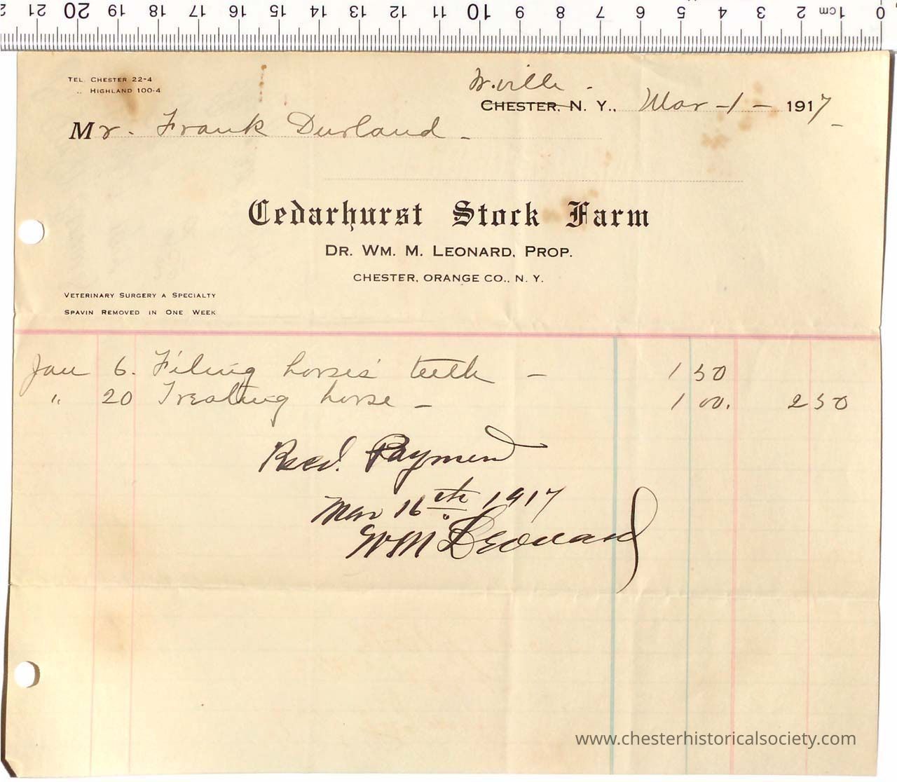 1917 - Cedarhurst Stock Farm - Dr. Wm. M. Leonard, Veterinary