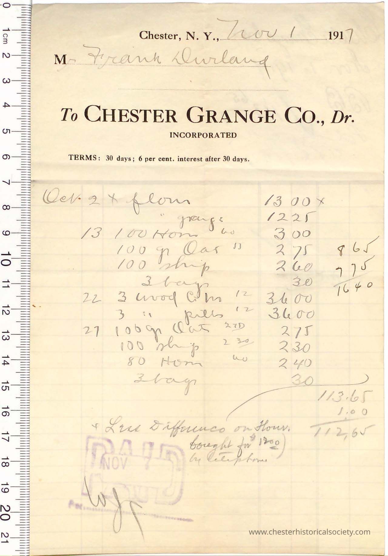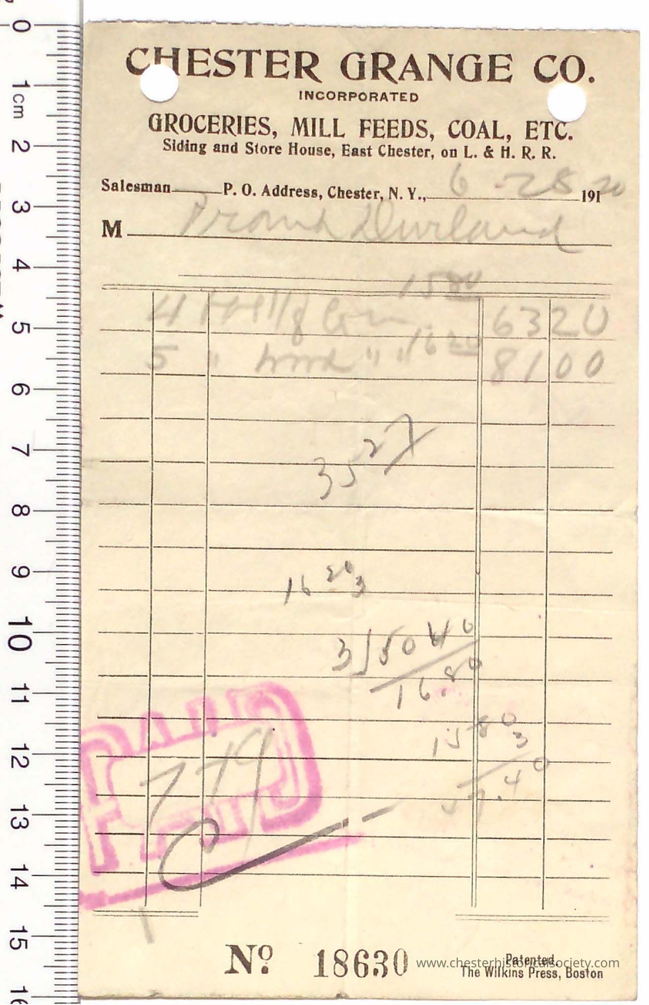 1917 - Chester Grange Co. - Groceries, Feeds, Hay and Coal