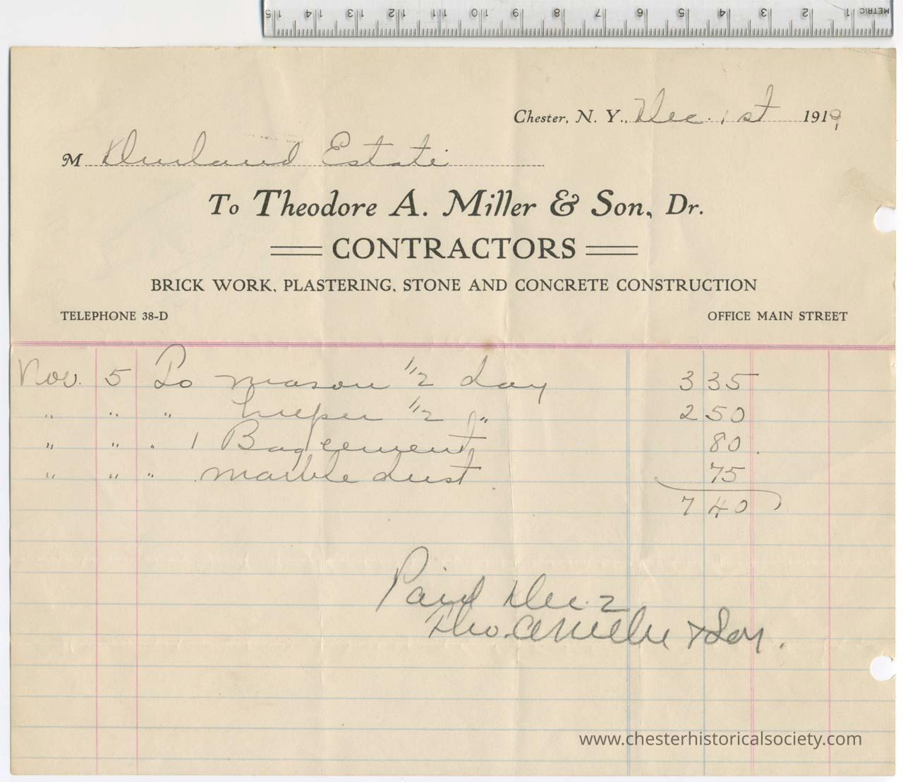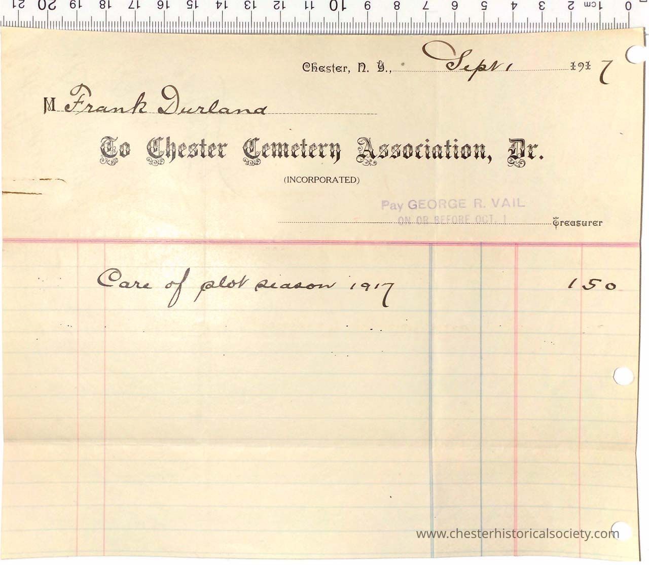 1917 - Chester Cemeterv Association - George R. Vail, Treasurer