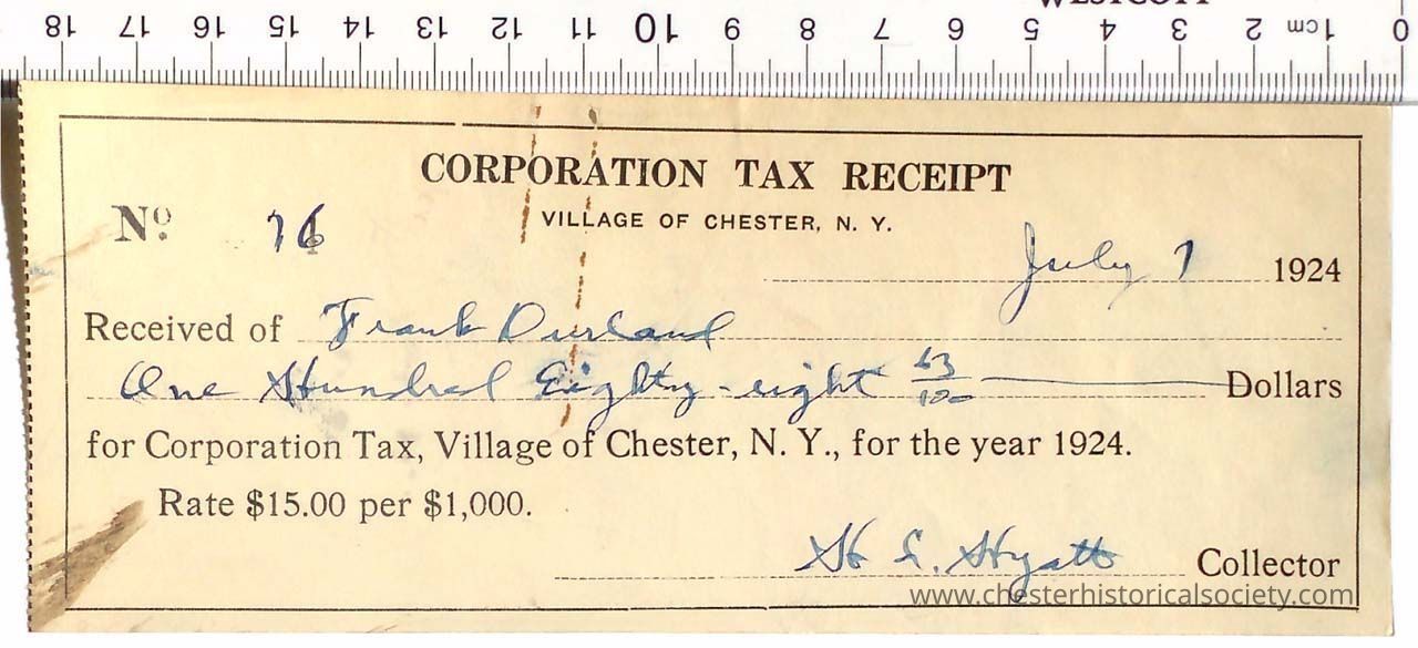1924 - Chester Corporation Tax Receipt, Rate, $15.00 per $1,000.