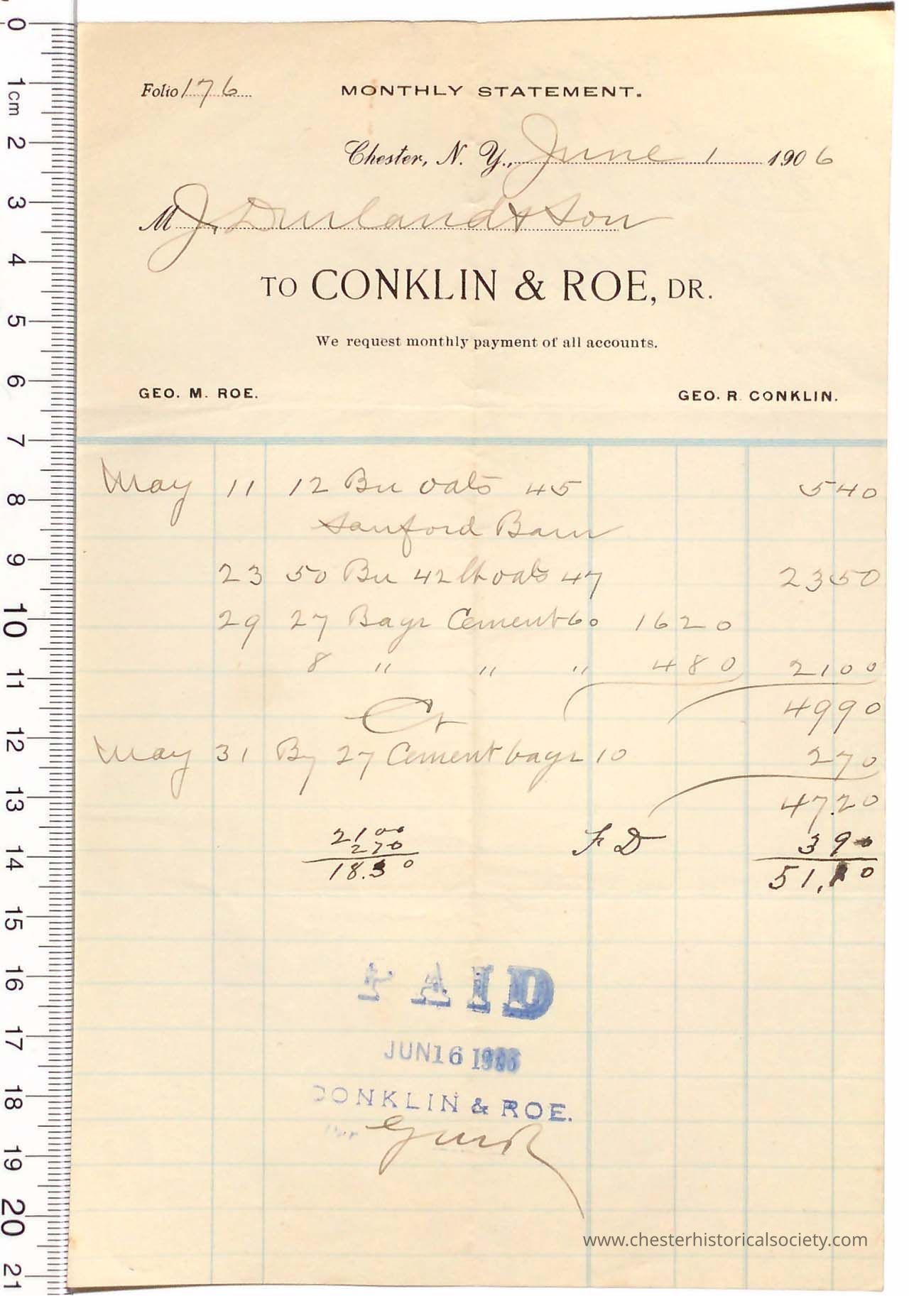 1906 - Conklin & Roe - George Roe & George R. Conklin - Feed Store