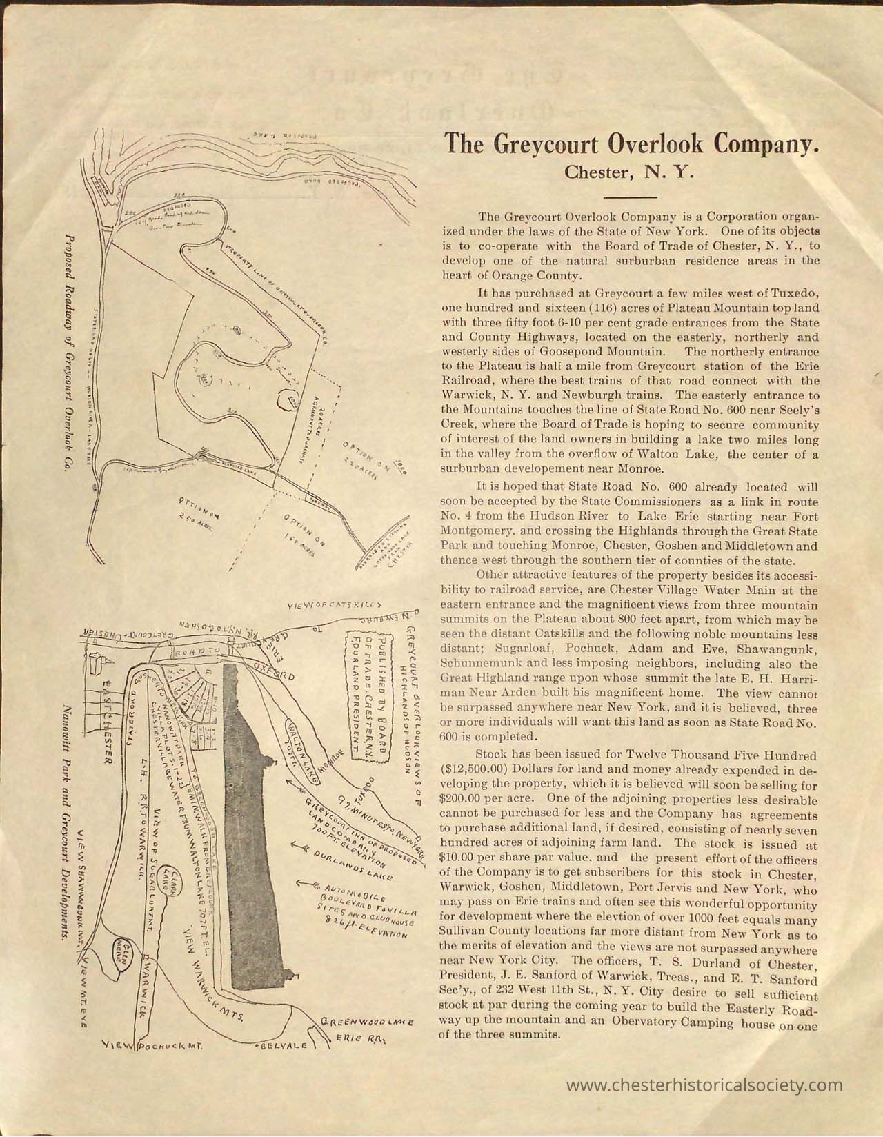 1910 - Greycourt Overlook Co. - 116 acres of land for development