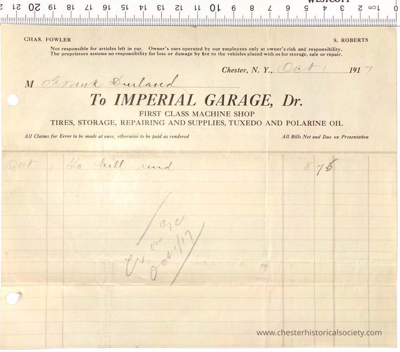 1917 - Imperial Garage - Charles Fowler & S. Roberts - Tires, Oil, & Machine Shop