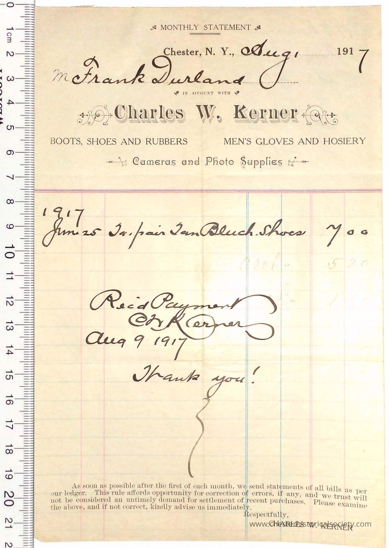 1917 - Kerner, Charles W. - Camera Supplies, Cloths & Shoes