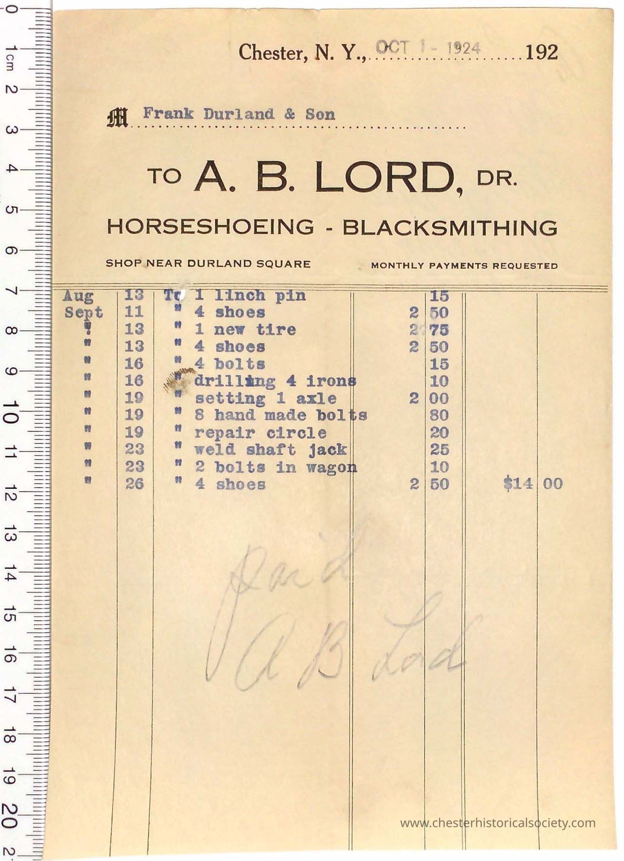 1924 - Lord, A. B. - Blacksmith