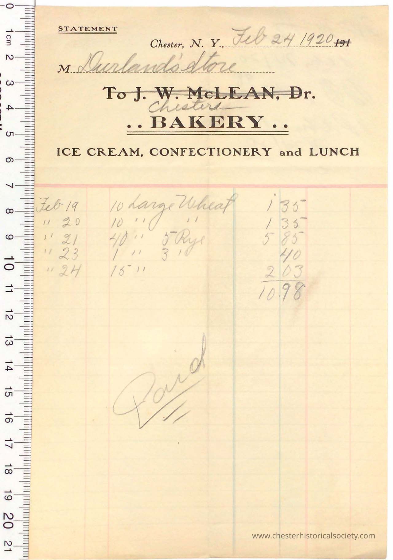 1920 - McLean, J. W. - Bakery, Ice Cream, Lunch - Later changed to "Chester Bakery"
