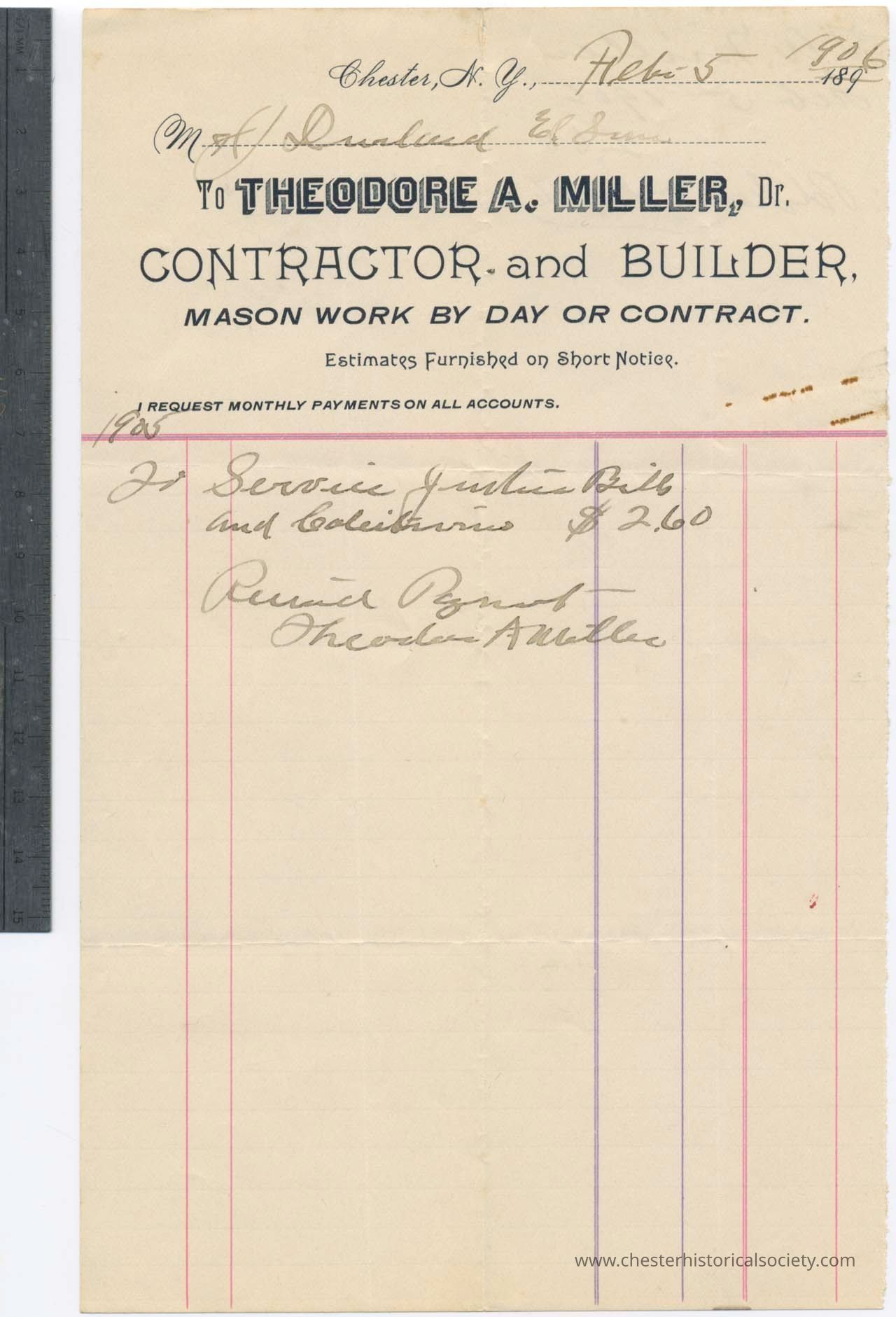 1906 - Miller, Theodore A. & Son - Contractor and Builder