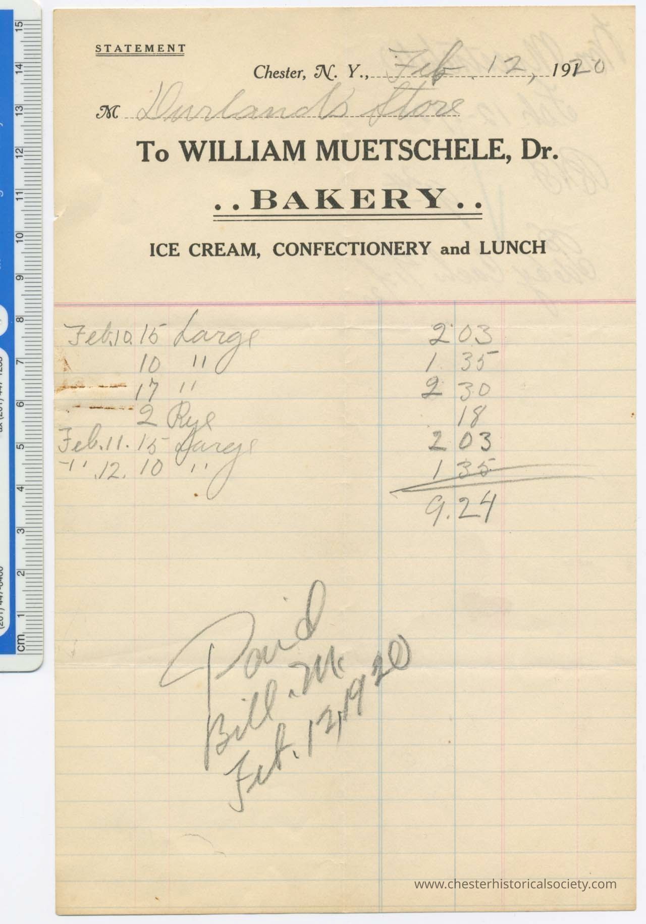 1917 - Muetschele, William - Bakery, Ice Cream, & Lunch