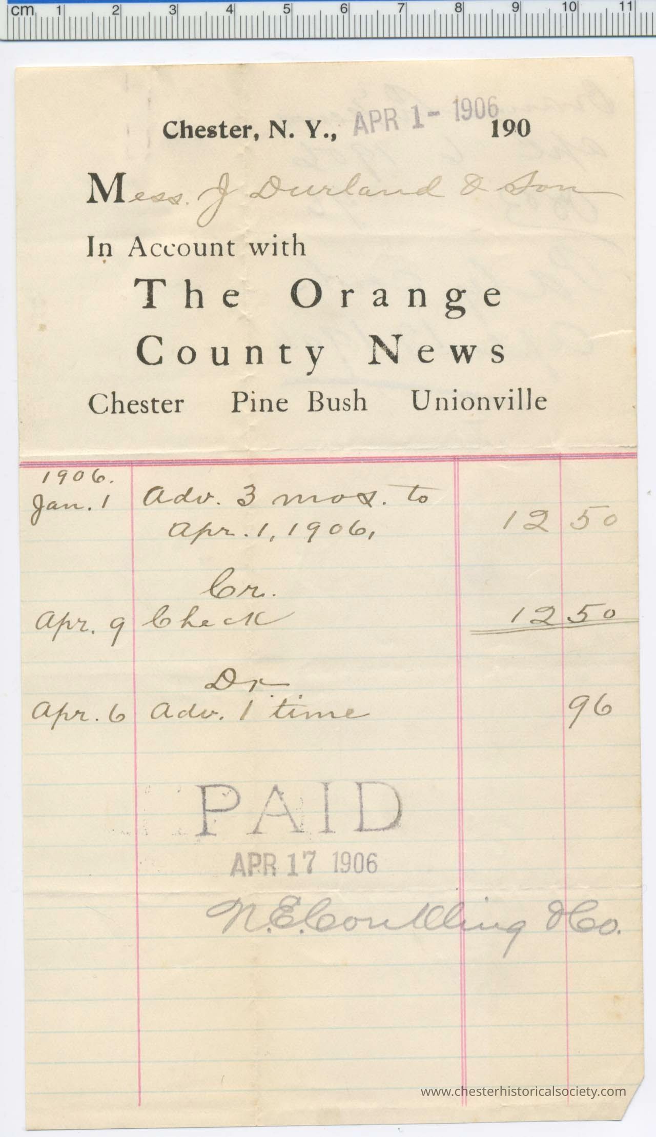 1906 - Orange County News - Chester, Pine Bush, & Unionville