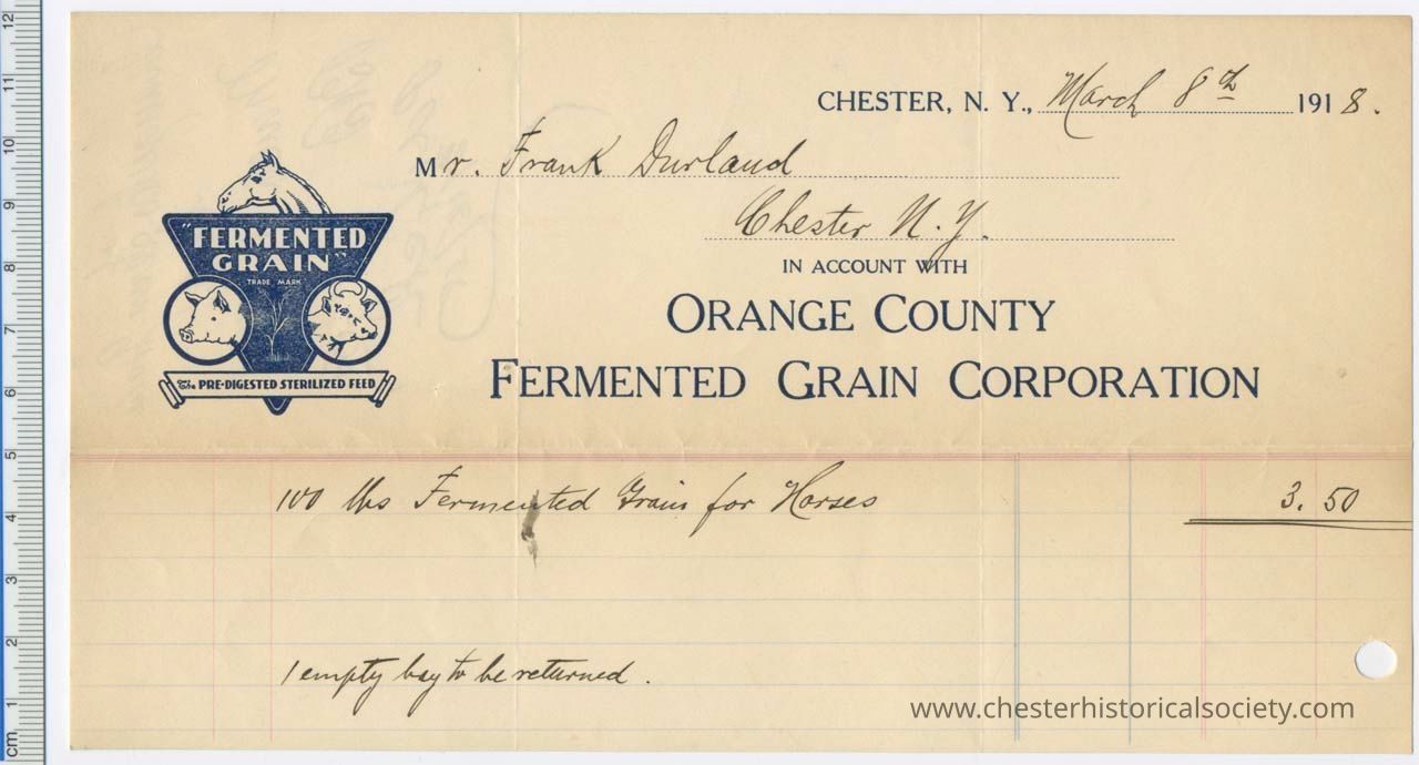 1918 - Orange County Fermented Grain Corporation - Paul Altenfeld, Treasure