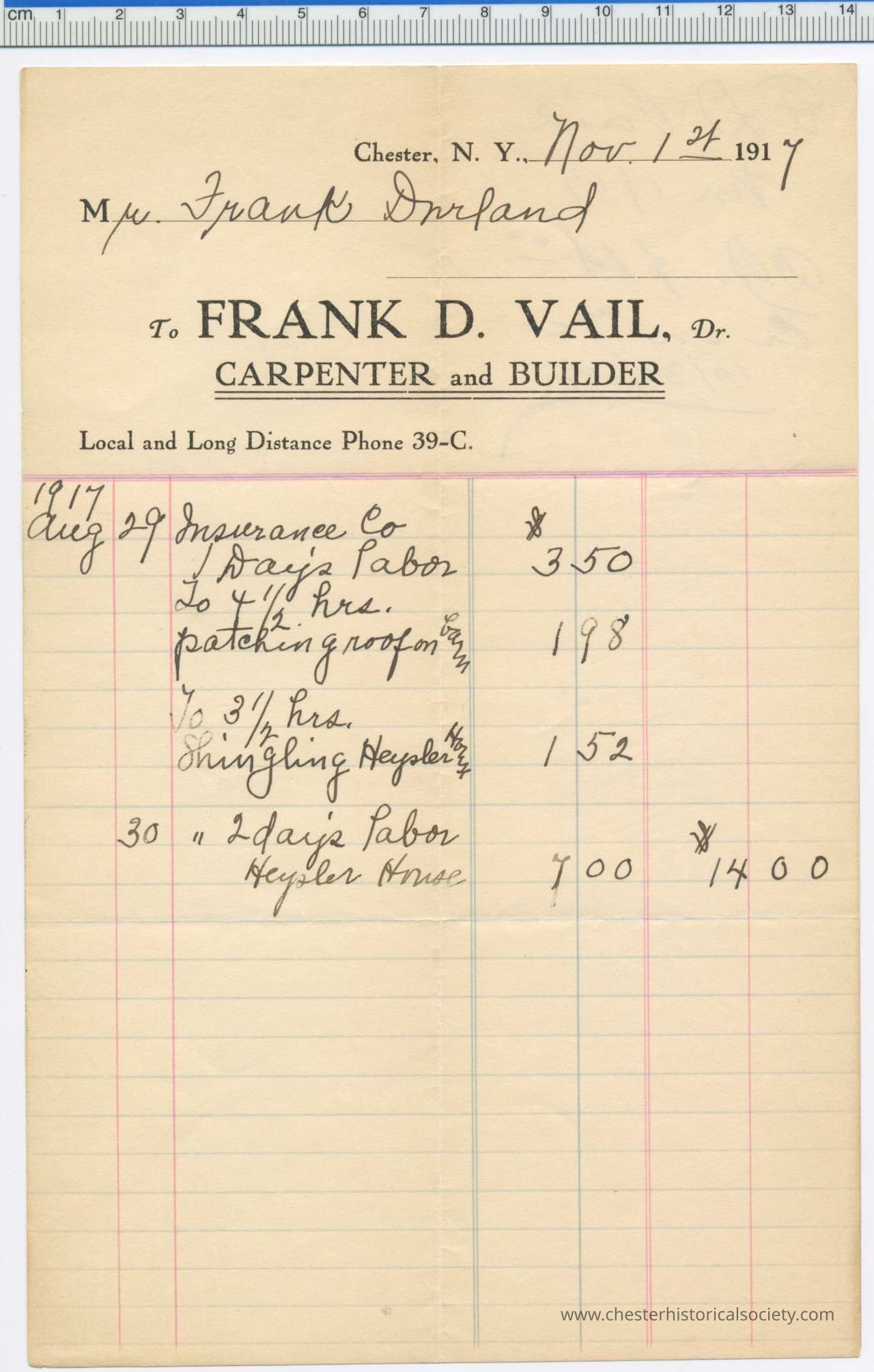 1917 - Vail, Frank D. - Carpenter and Builder