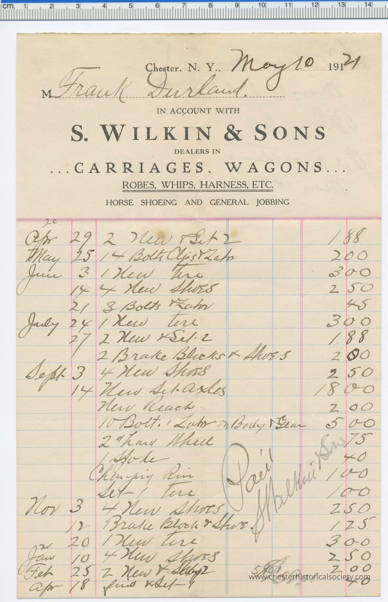 1921 - Wilkin, S. & Sons - Wagons, Hardness's, & Horse Shoes