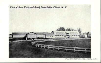 Race Track, Brook Farm, Chester, N.Y., built 1911-1912. In 1914 it was called the finest equipped racing “plant” owned by an individual in the U.S. Chester townspeople were encouraged to excerise their horses here. Richard Delefield, owner, held a free annual racing matinee with refreshments, It was usually attended by at least 1000 persons.