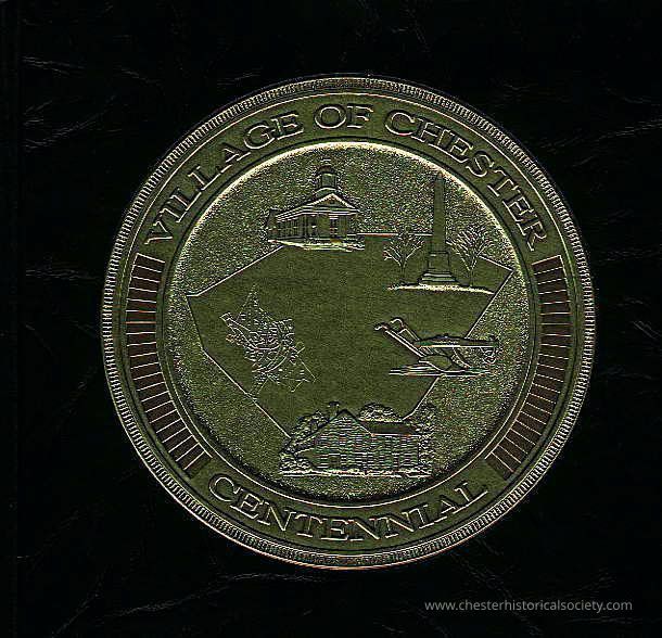 The Village of Chester Centennial book cover graphic depicts engraved historical buildings and landscape elements.