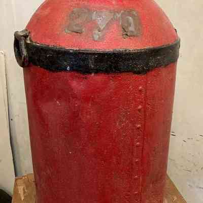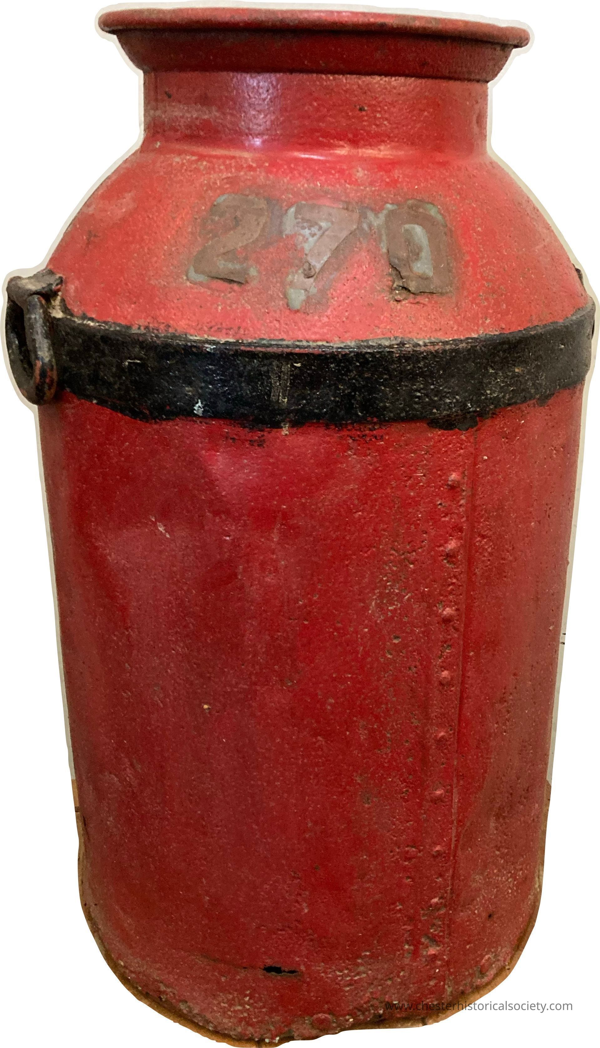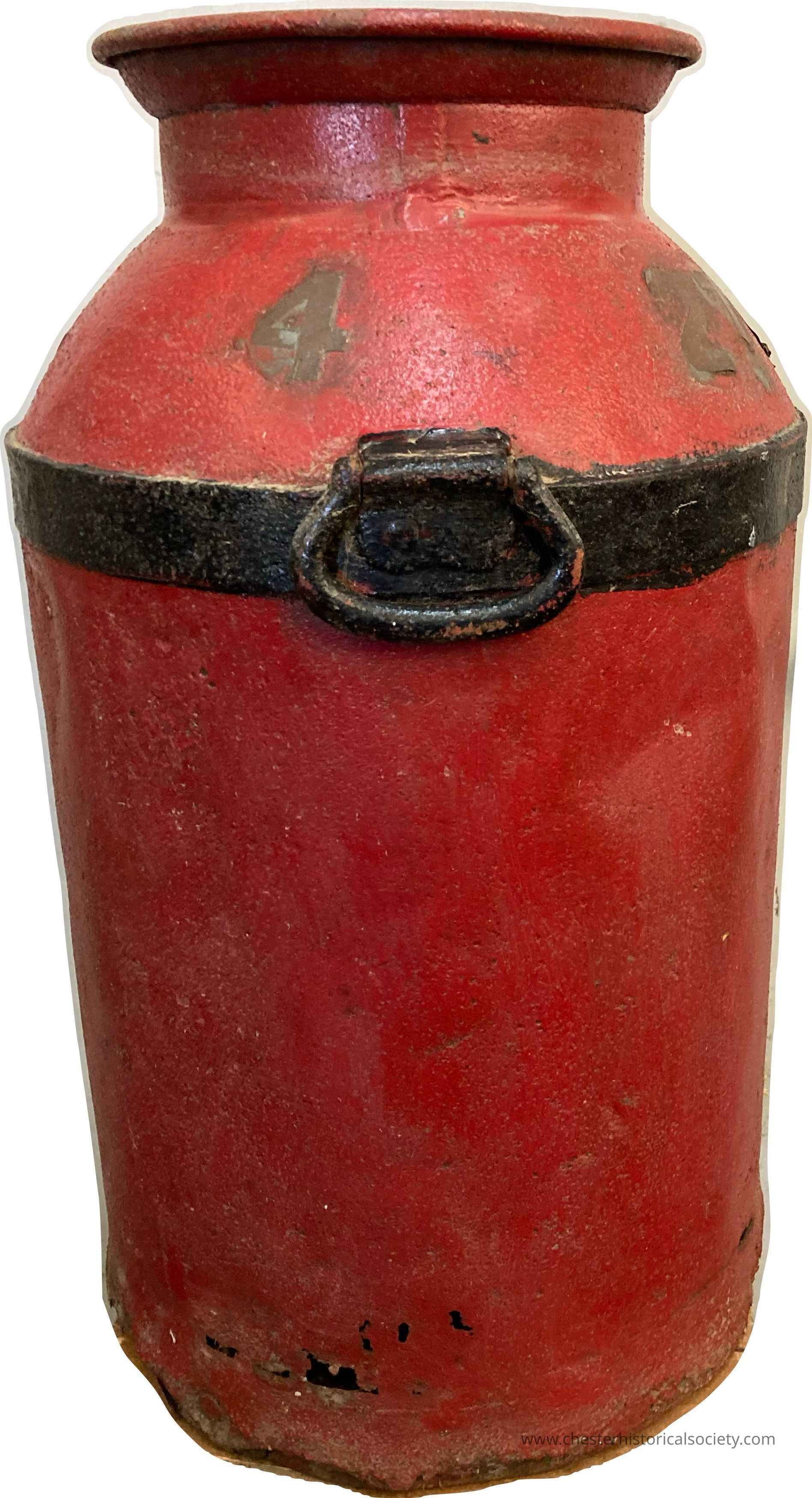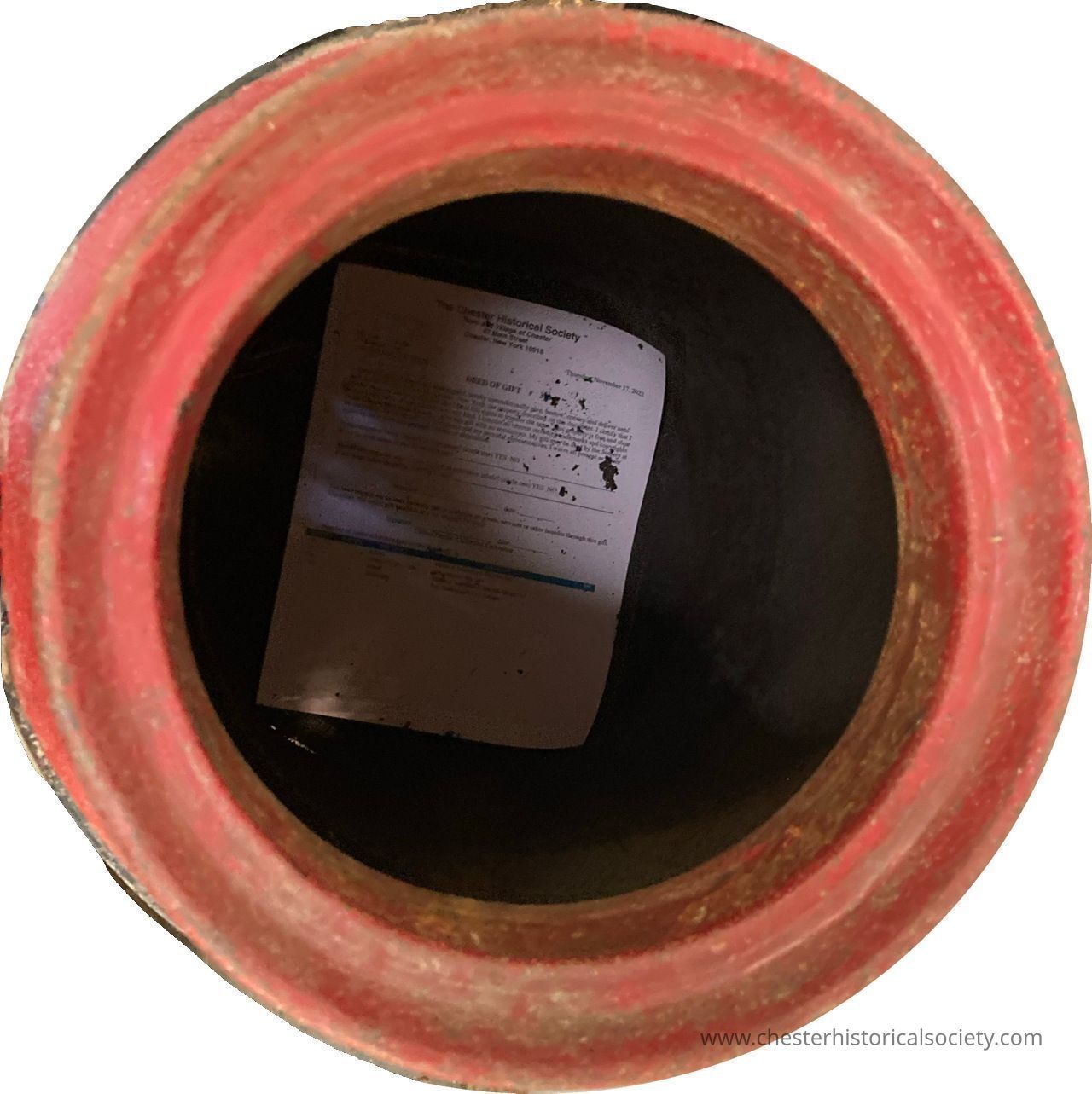 Painted red, with black band - formerly kept in the house of Dottie Talmadge, then after her death in 2004, her son, Dale. Dale is the g-grandson of WA Lawrence, grandfather of Dottie.