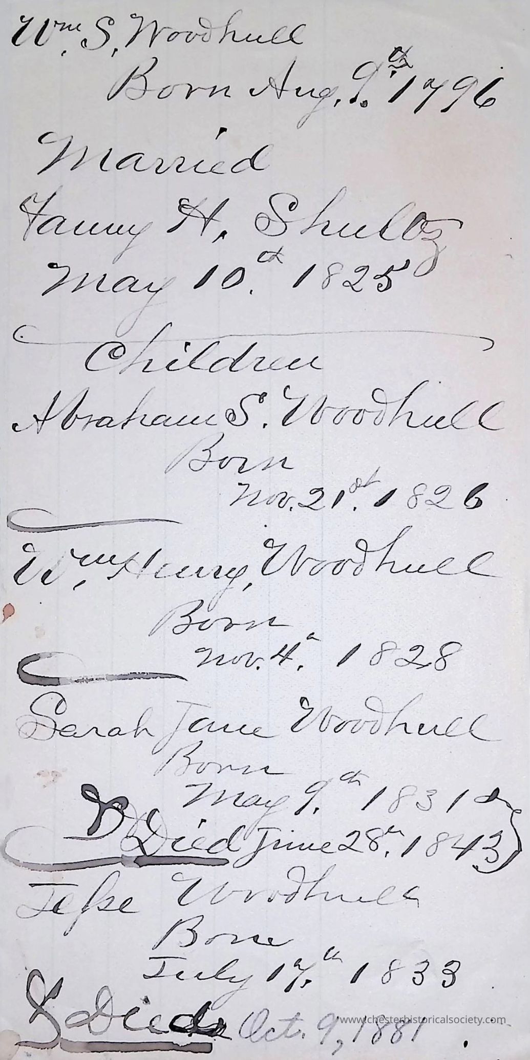 A record of the Woodhull Family who resided in or around Chester, Orange County NY.Collection