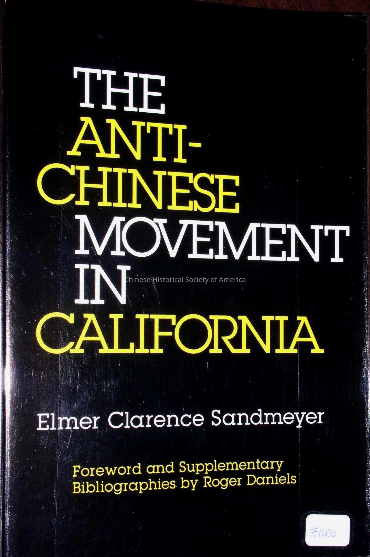 "originally published in 1939, this book was the first objective study of the anti-Chinese movement in the Far West...", addresses role of organized labor and specificities of different pieces of anti-Chinese legislation.Book Details