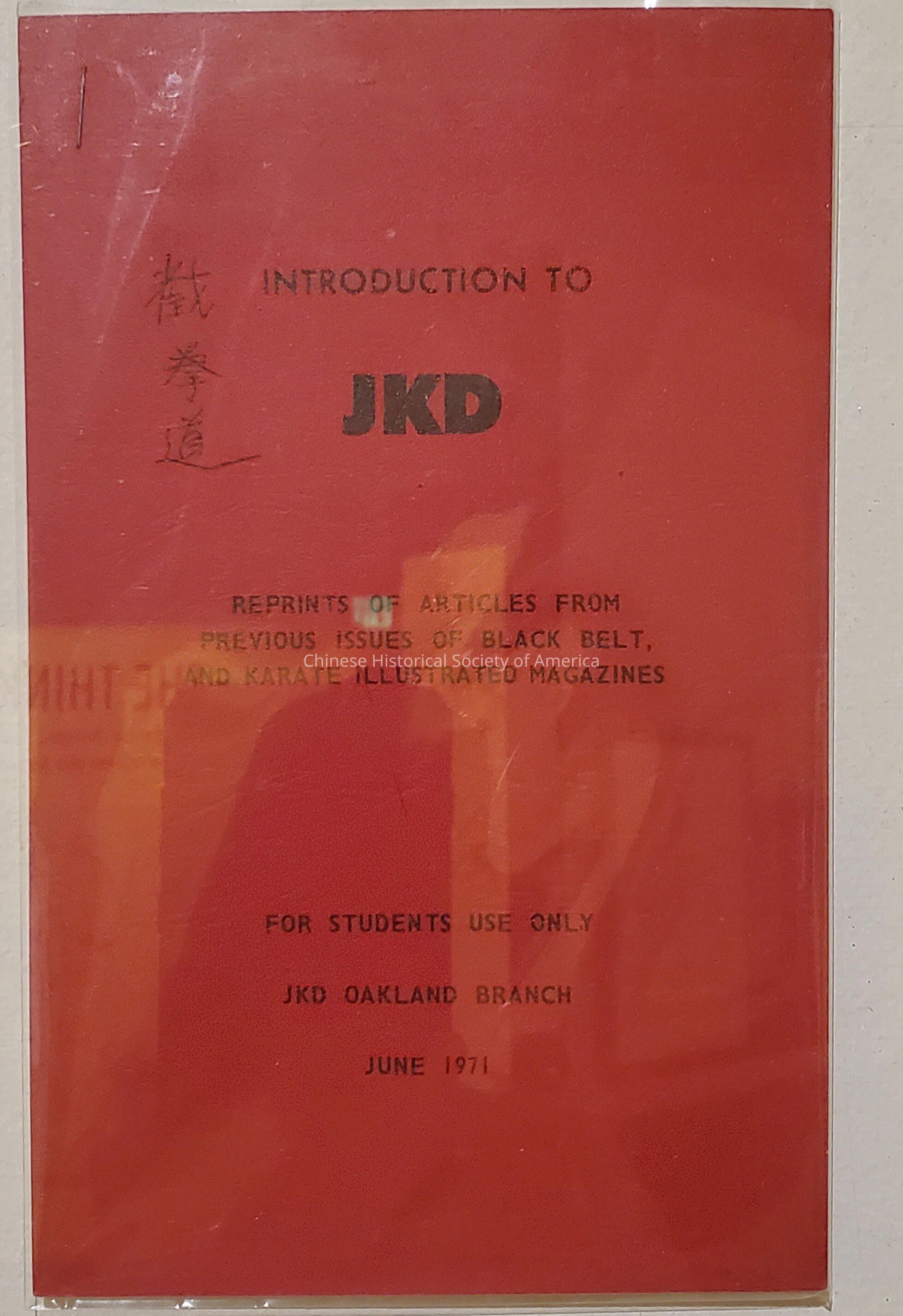 Booklet with red cover, a compilation of reprints of articles from previous issues of Black Belt and Karate Magazines with illustrated Jeet Kune Do exercises, "for students use only" June 1971Context