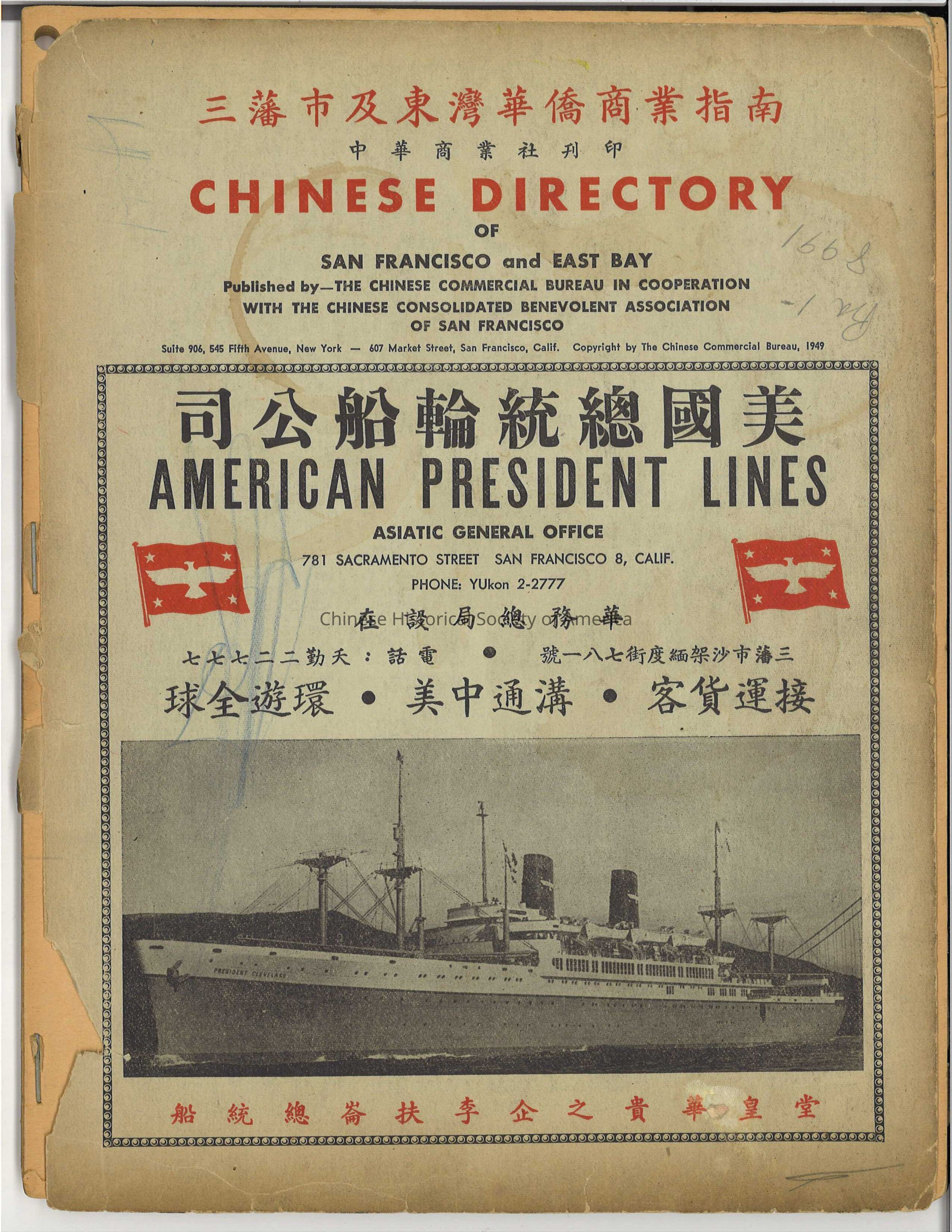 Chinese Directory of San Francisco and East Bay. Published by - the Chinese Commercial Bureau in cooperation with the Chinese Consolidated Benevolent Association of San Francisco.