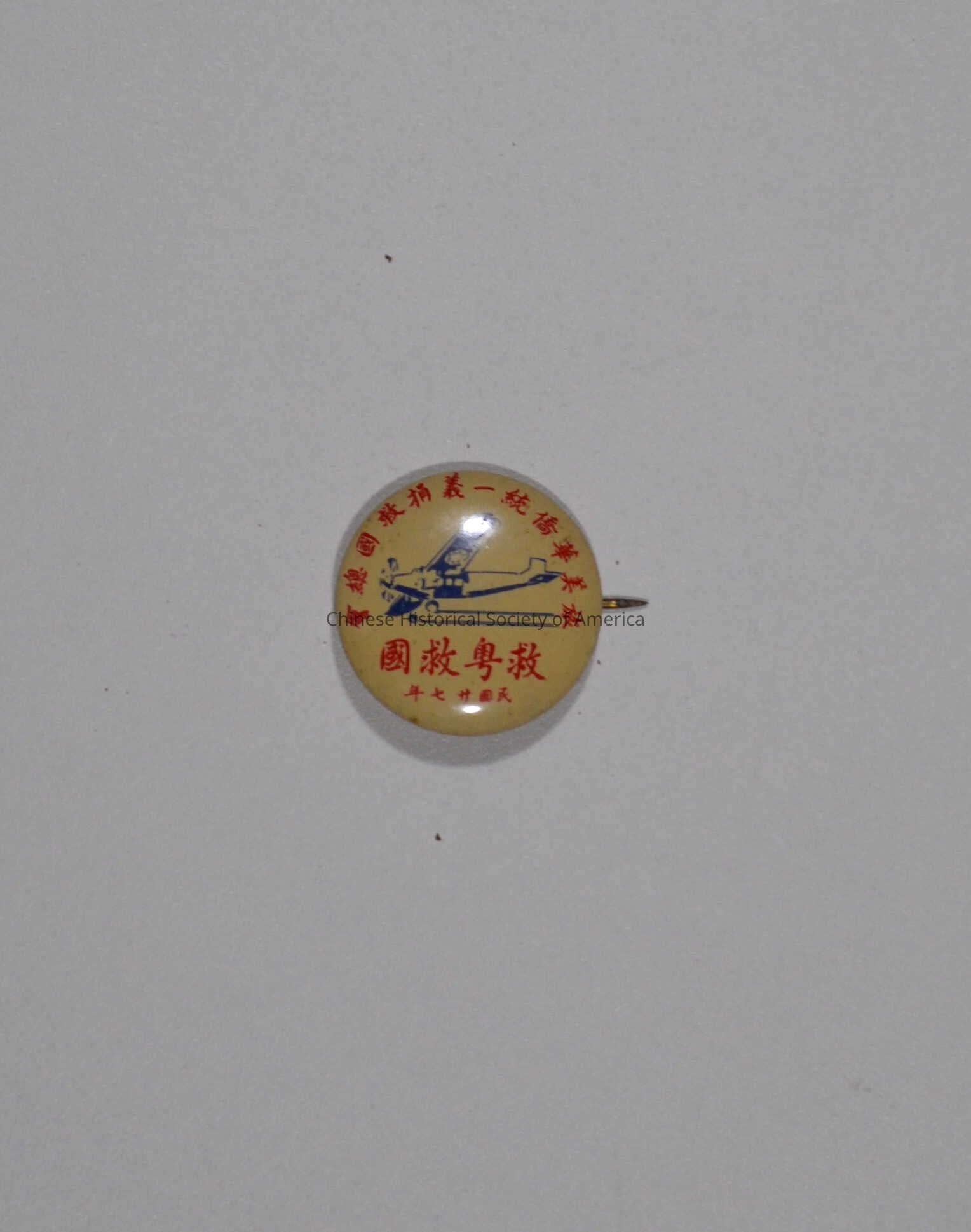 Pin with airplane and 救粤救國 Relieve Guangdong, Relieve the Nation, dated 民國廿七年 1938