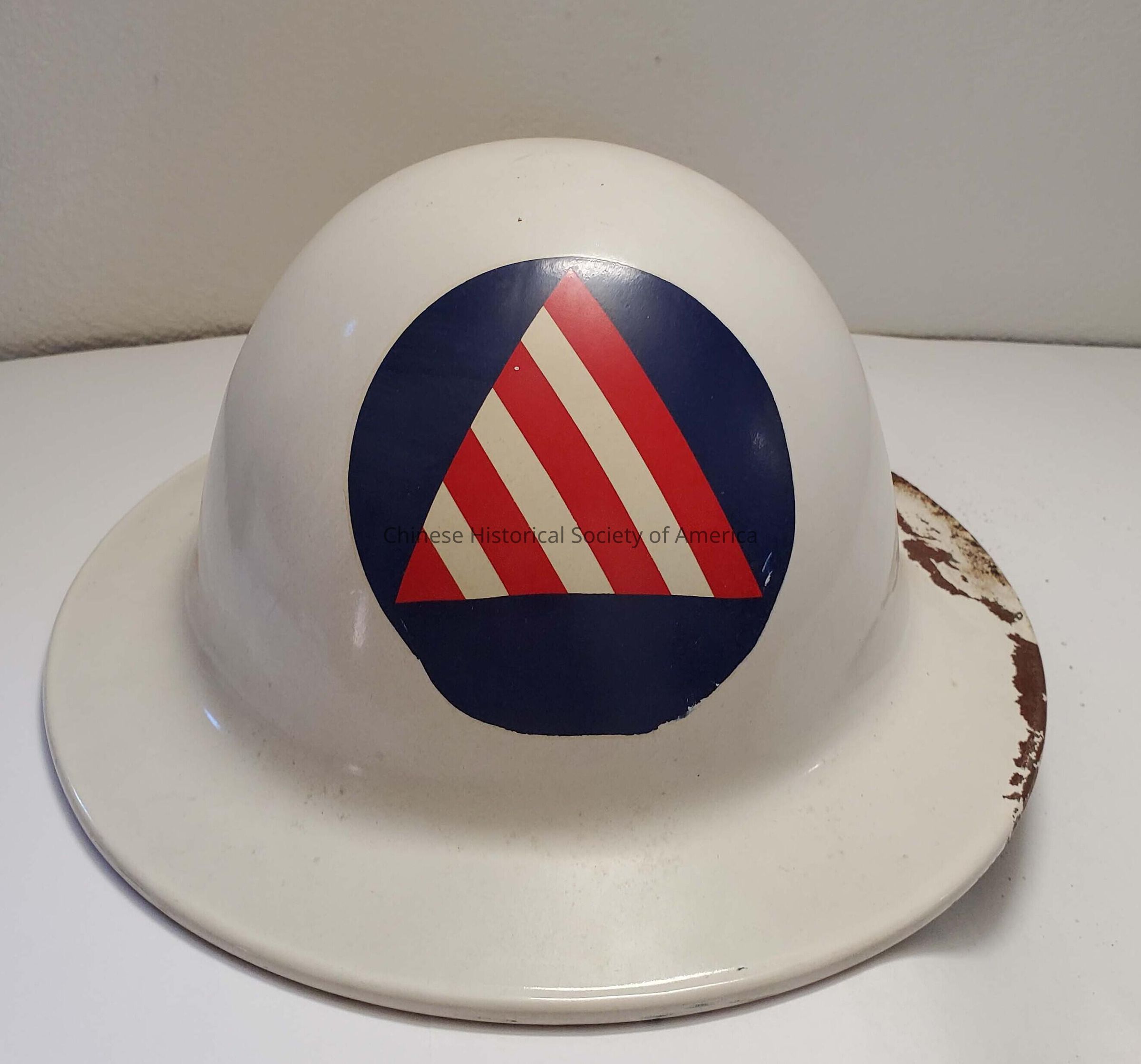 Air Raid Warden's helmet 1942. May need to re-label as 1998.003.00022