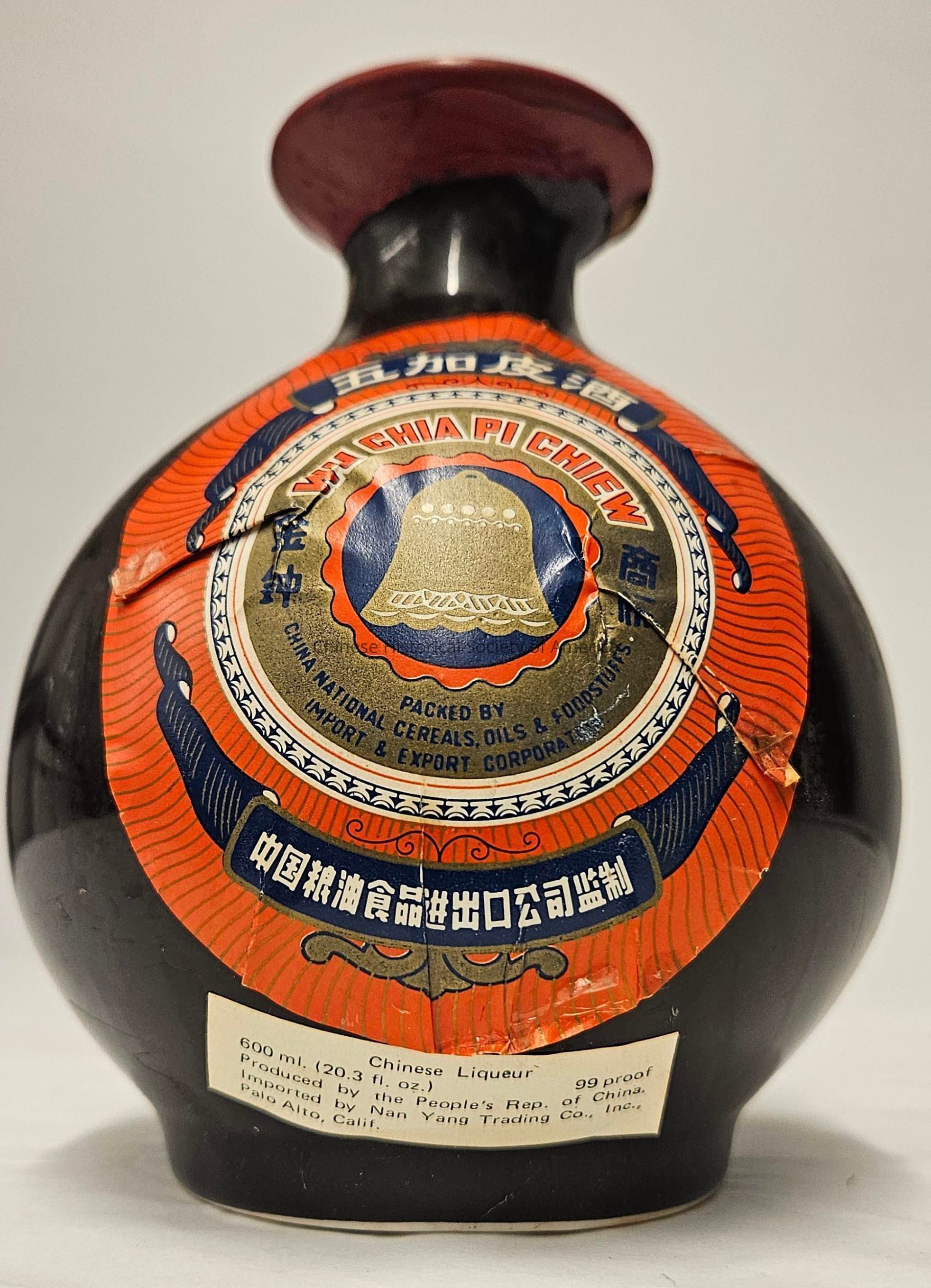 Brown bottle with large label "Wai Chia Pi Chiew, China National Cereals, Oils, and Foodstuffs Import Export CorporationContext