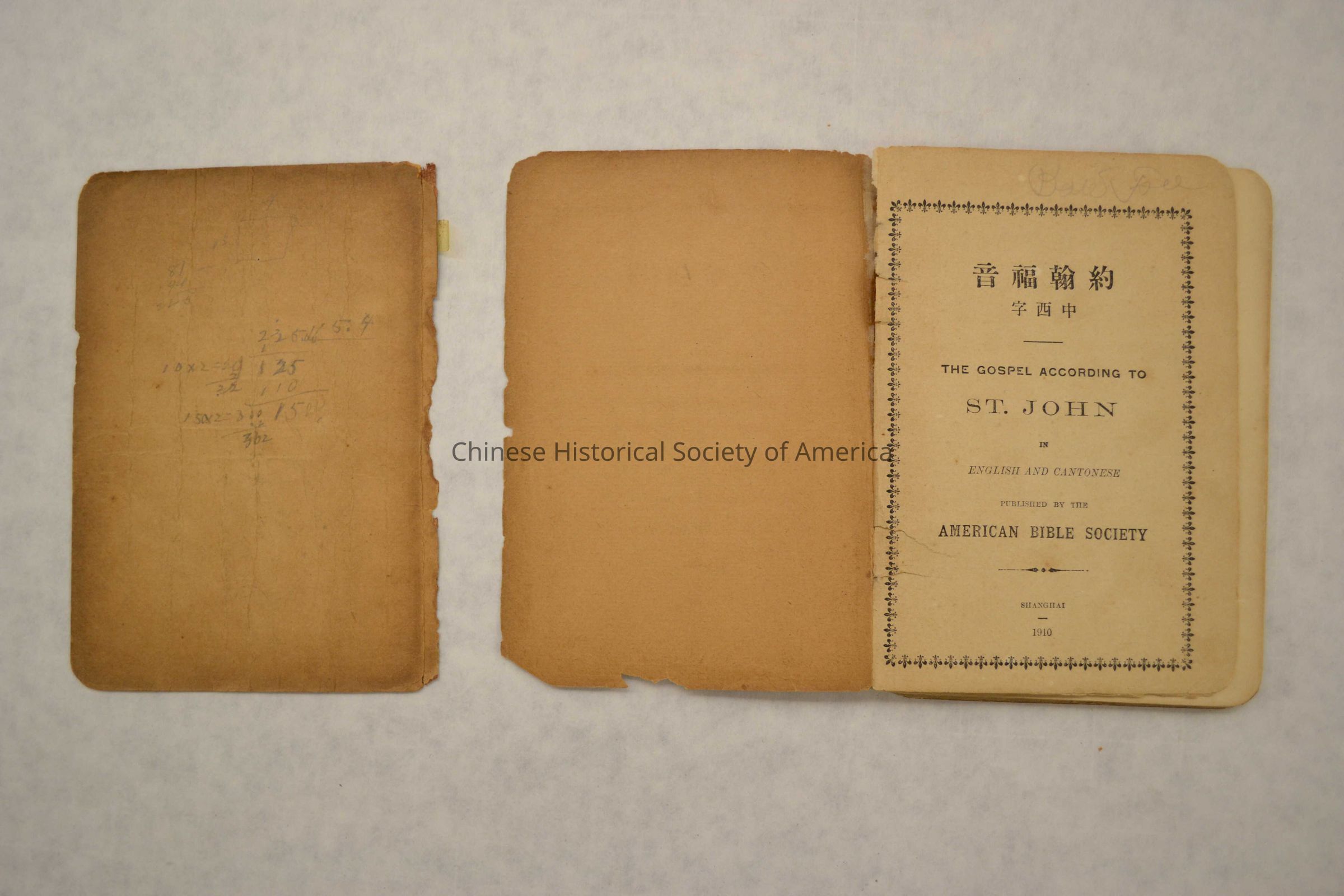 A bilingual gospel of St. John. Published in Shanghai in 1910. The book is translated into verbal Cantonese Chinese. Valuable to linguistic study in the development of Cantonese.