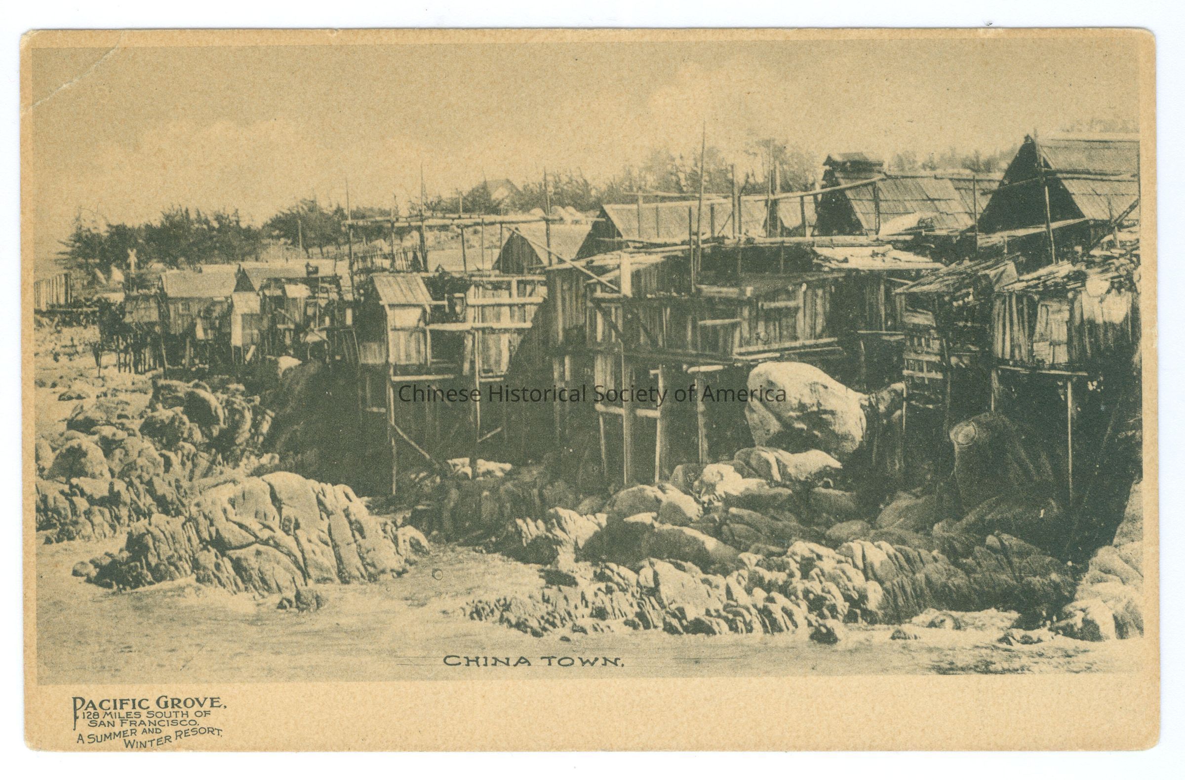 See Monterey: CHSA-04623-04627. A: Front: Caption: "China Town." "Pacific Grove. 128 Miles South of San Francisco. A Summer and Winter Resort." Back: Old Accession #: N)-.