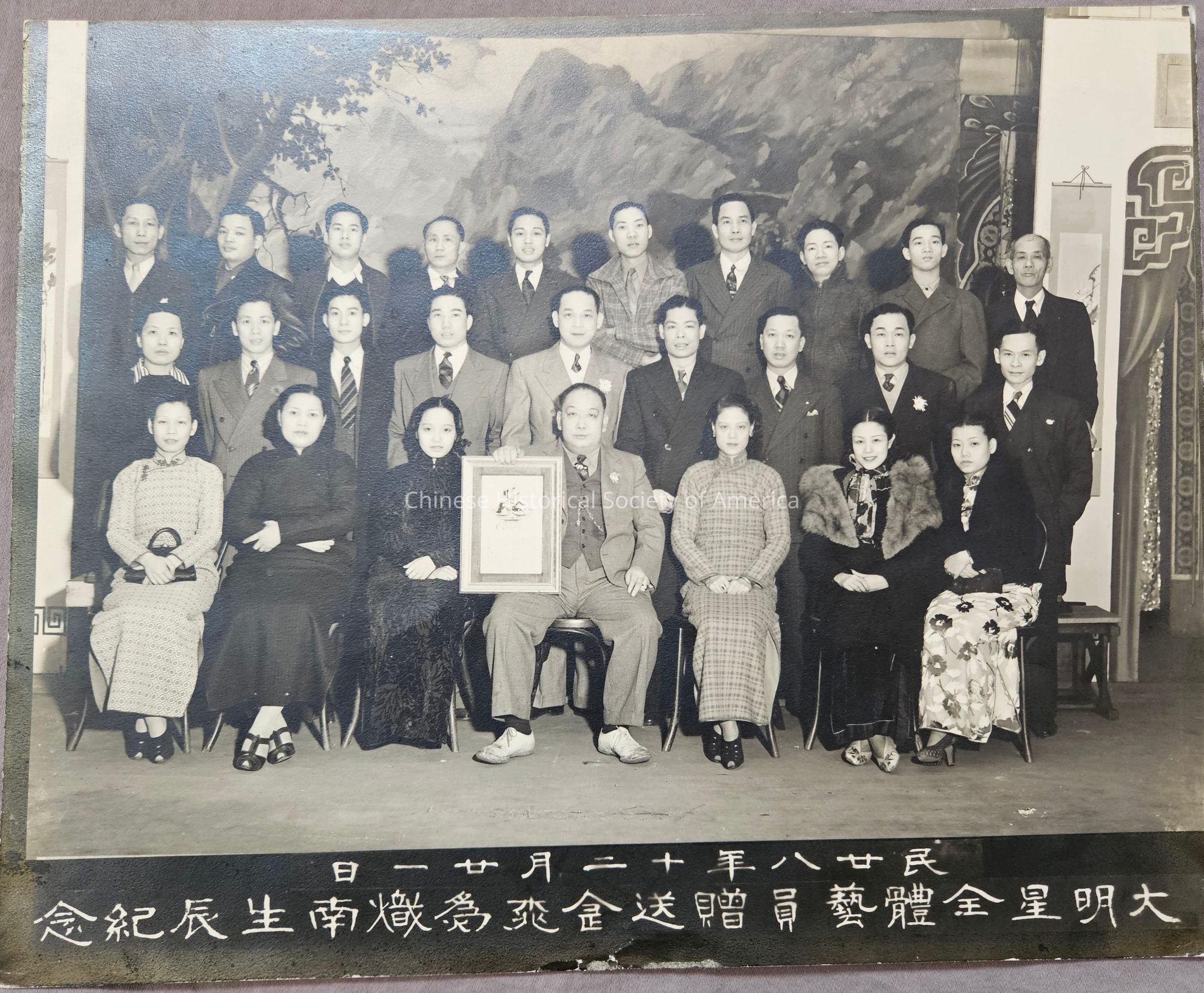 1939 December 21: All staff and performers from the Great Star Theater give the banner as a birthday gift for Chi Nan.