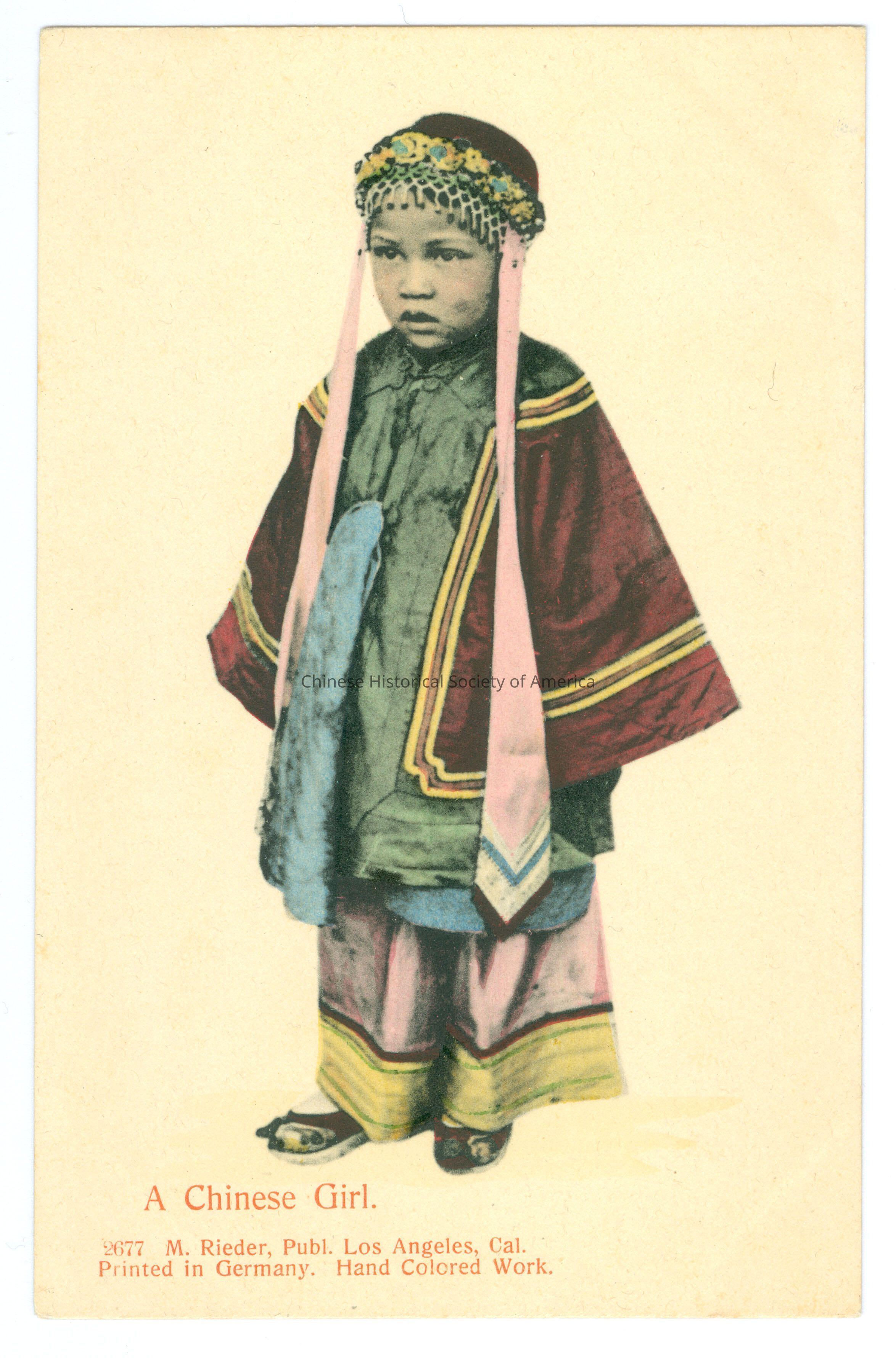 Front: Caption: "A Chinese Girl." "2677 M. Reider, Publ. Los Angeles, Cal. Printed in Germnay. Hand Colored Work." Back: Old Accession #: A)-