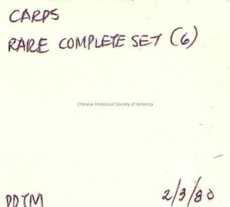 Front: On a small white square card is the following notation: Six German Advertising Cards (Rare Complete Set (6) and DDTM 2/3/80 Back: Object ID#